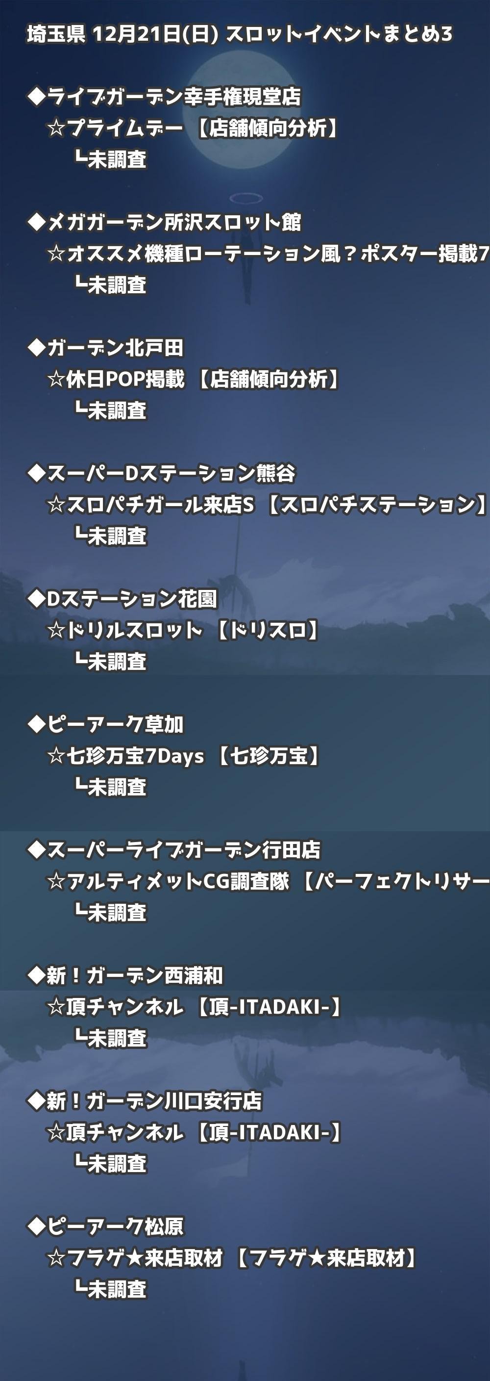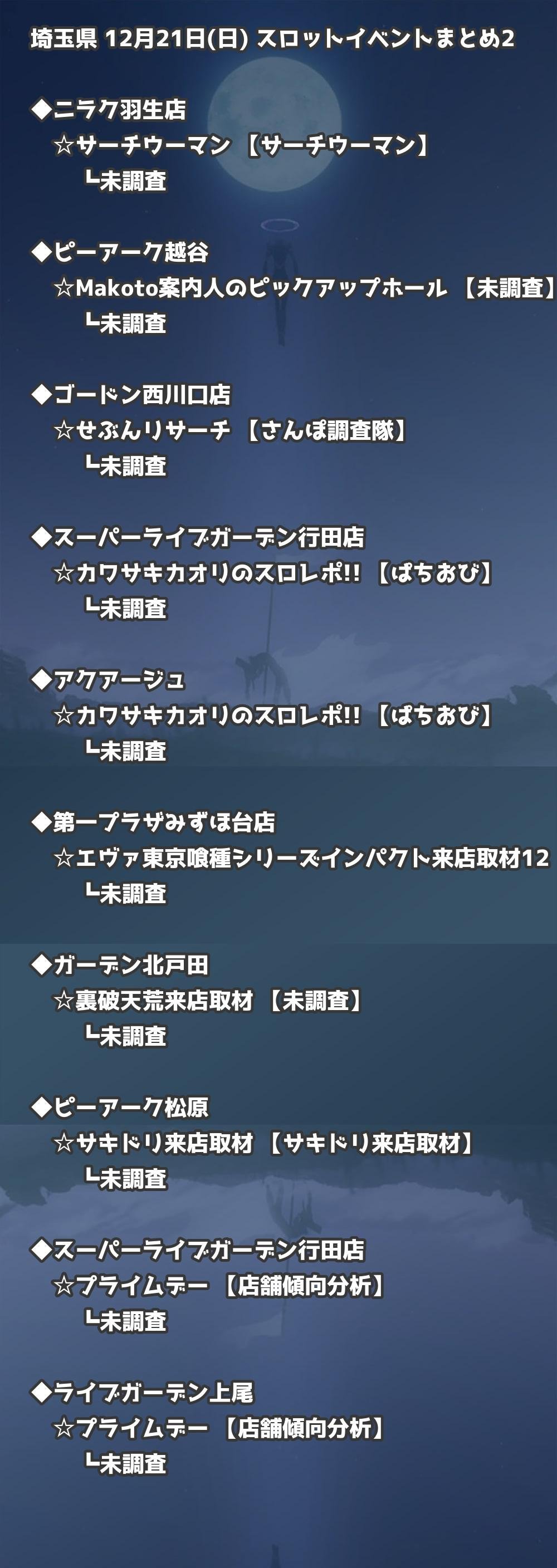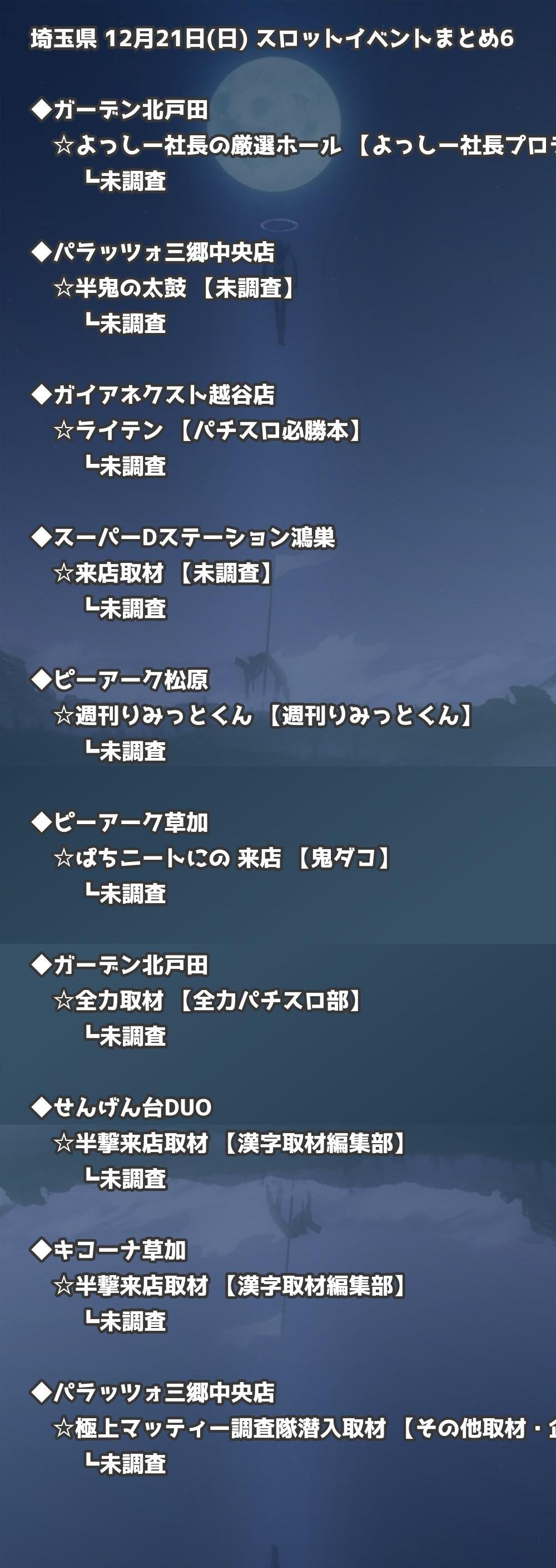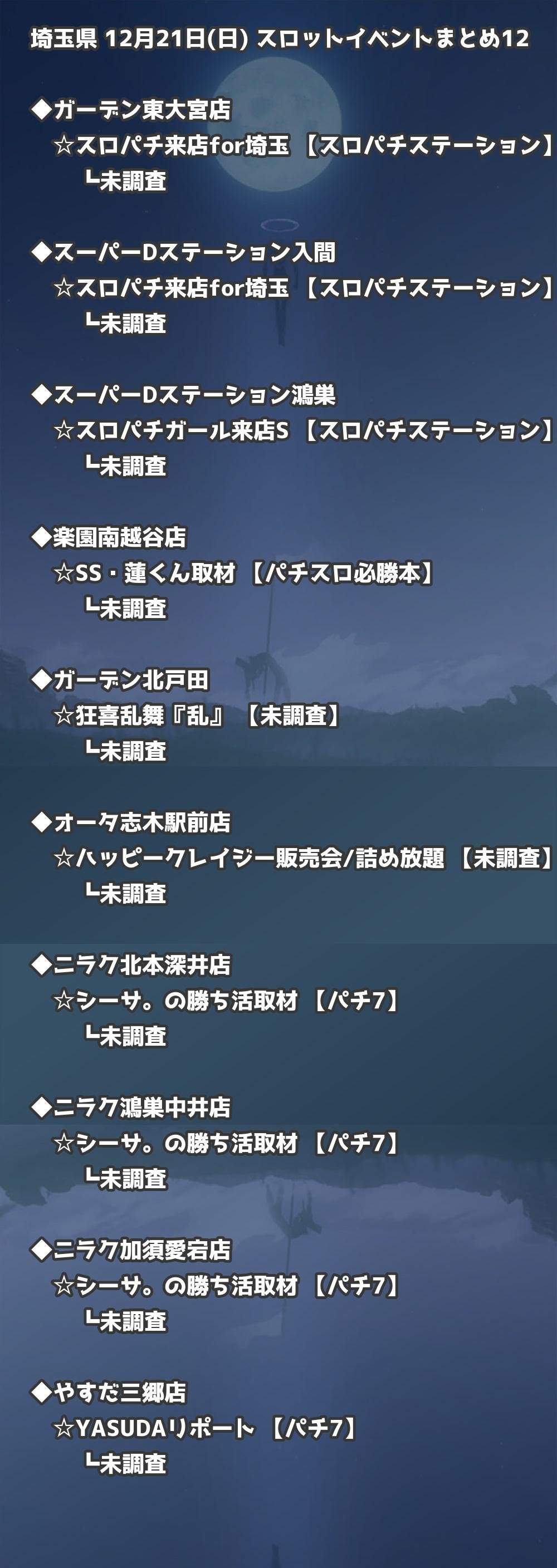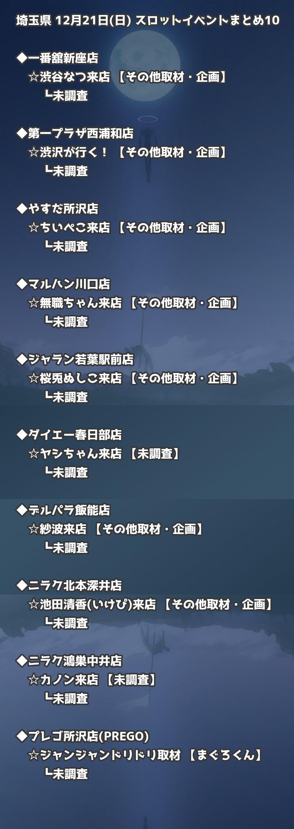 【埼玉県】12月21日(日) パチンコホールイベント取材まとめ記事です。