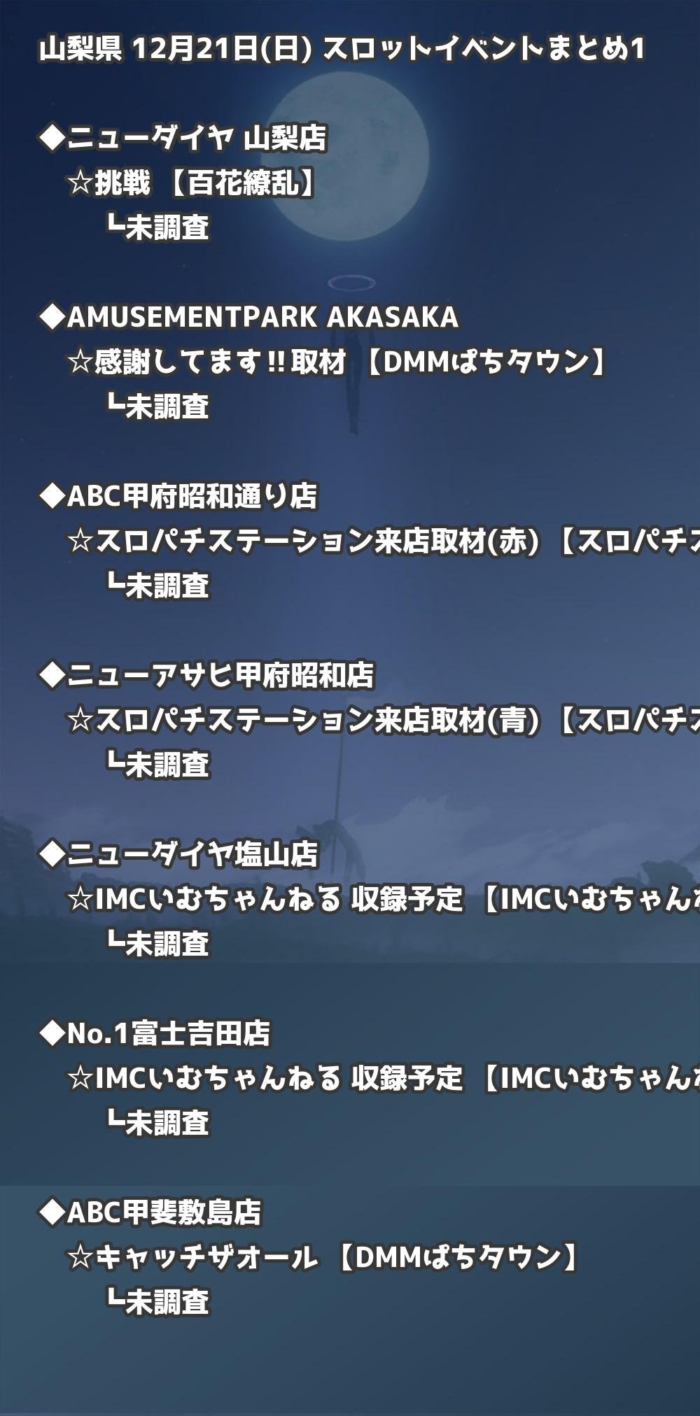 📊 山梨県 12月21日(日) 勝てるパチンコ・スロット取材店舗一覧|おすすめ順