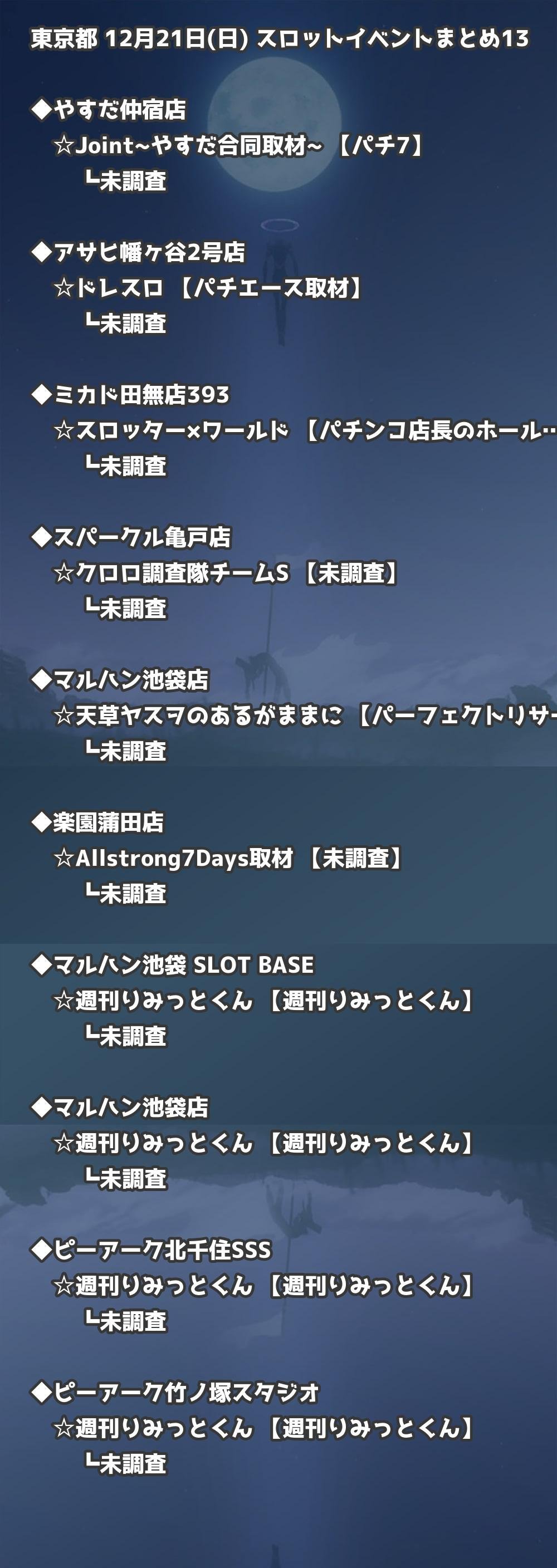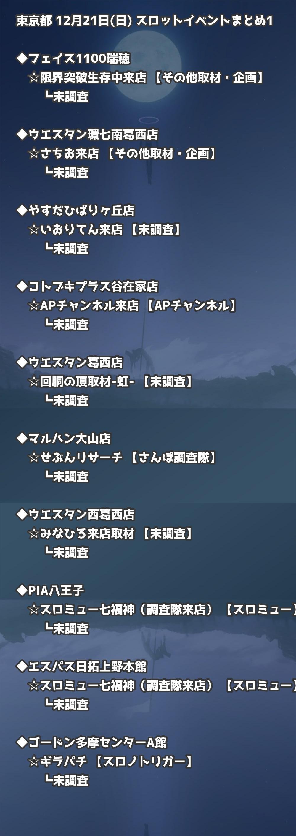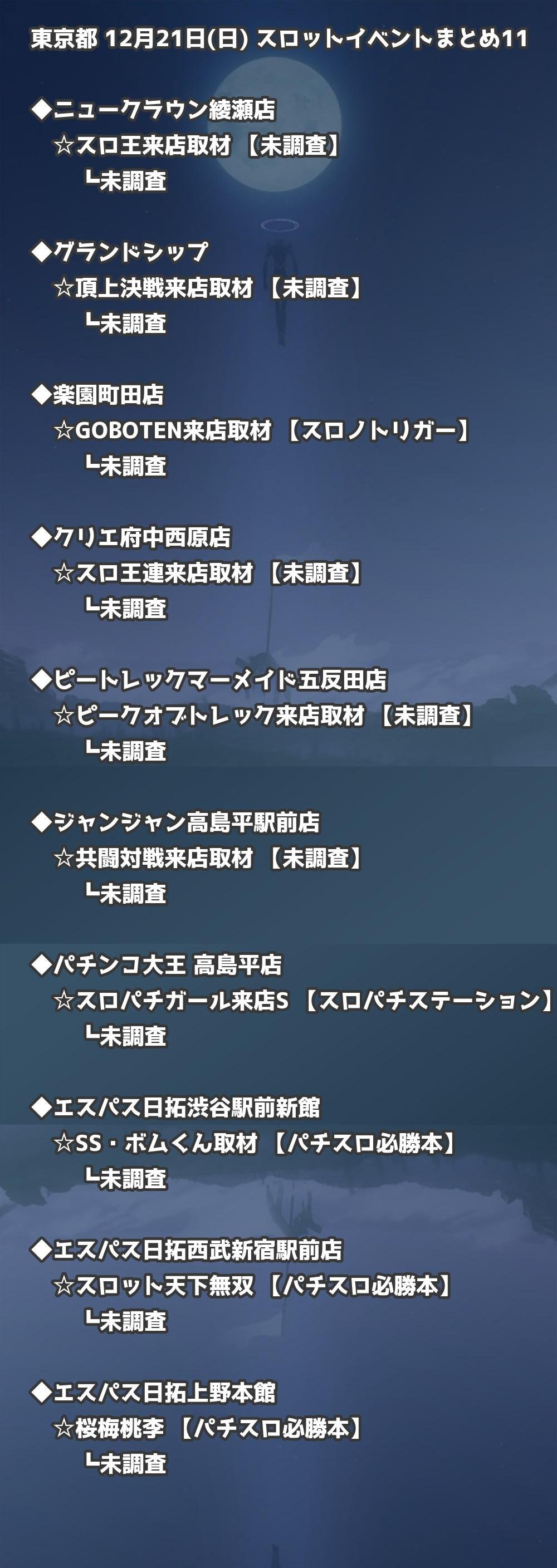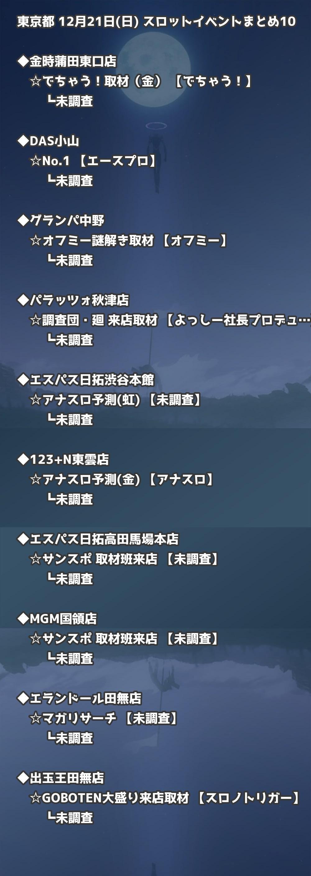 📊 東京都 12月21日(日) 勝てるパチンコ・スロット取材店舗一覧|おすすめ順
