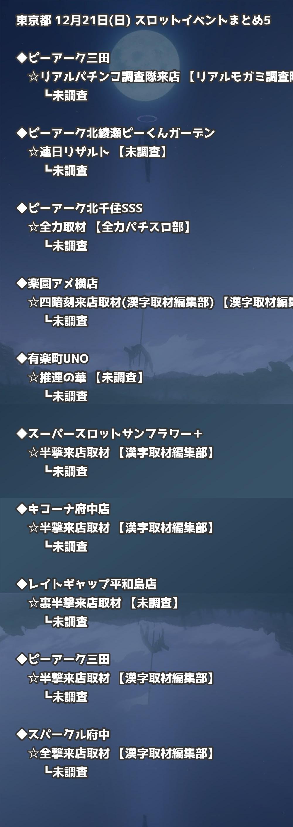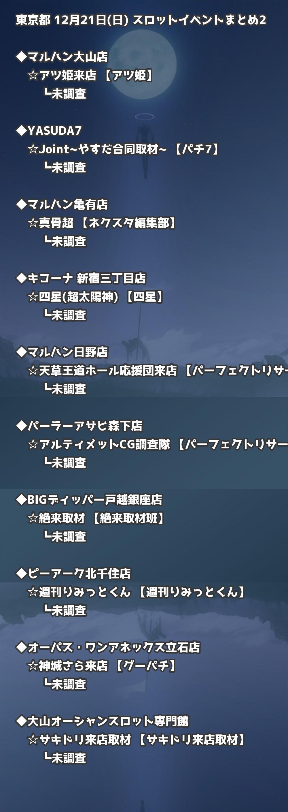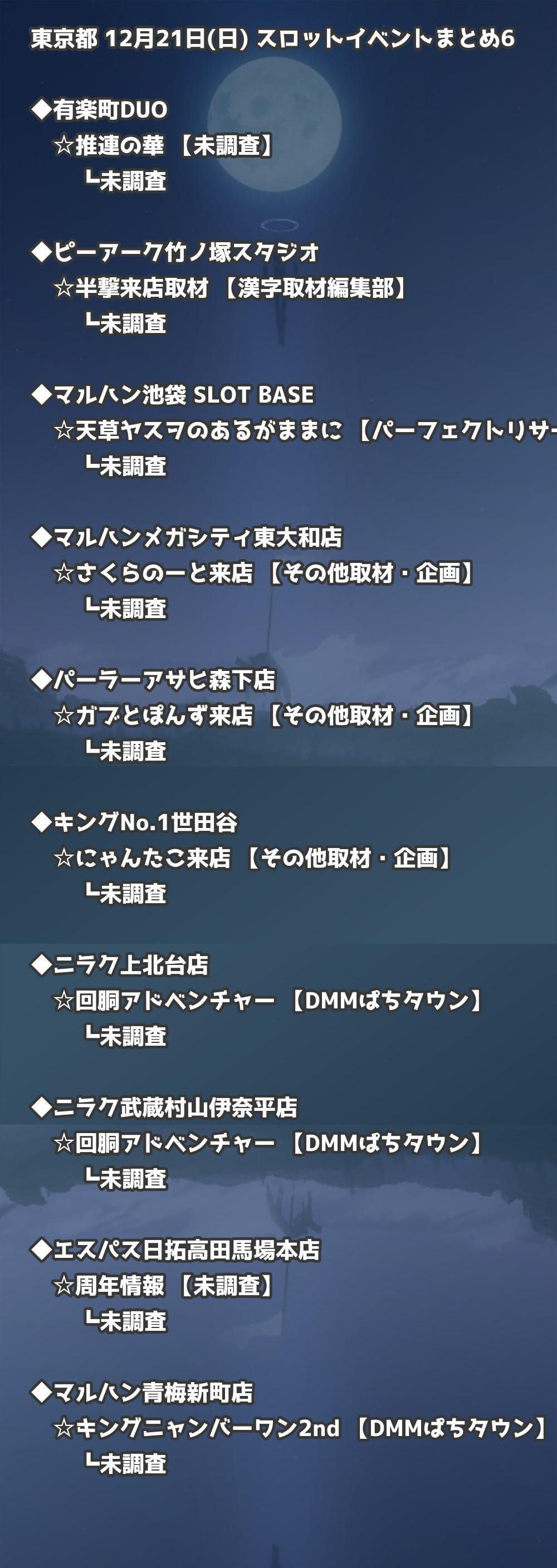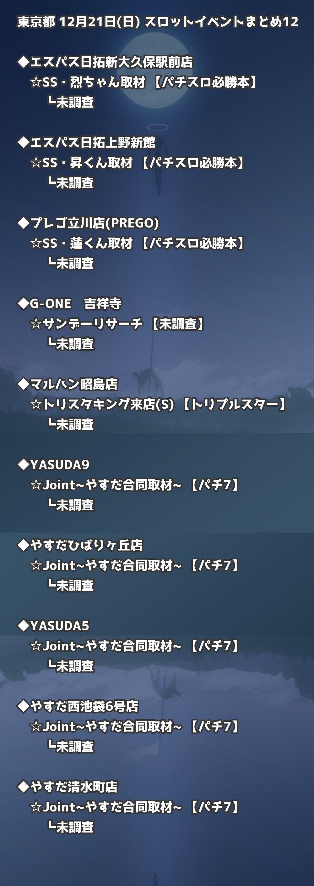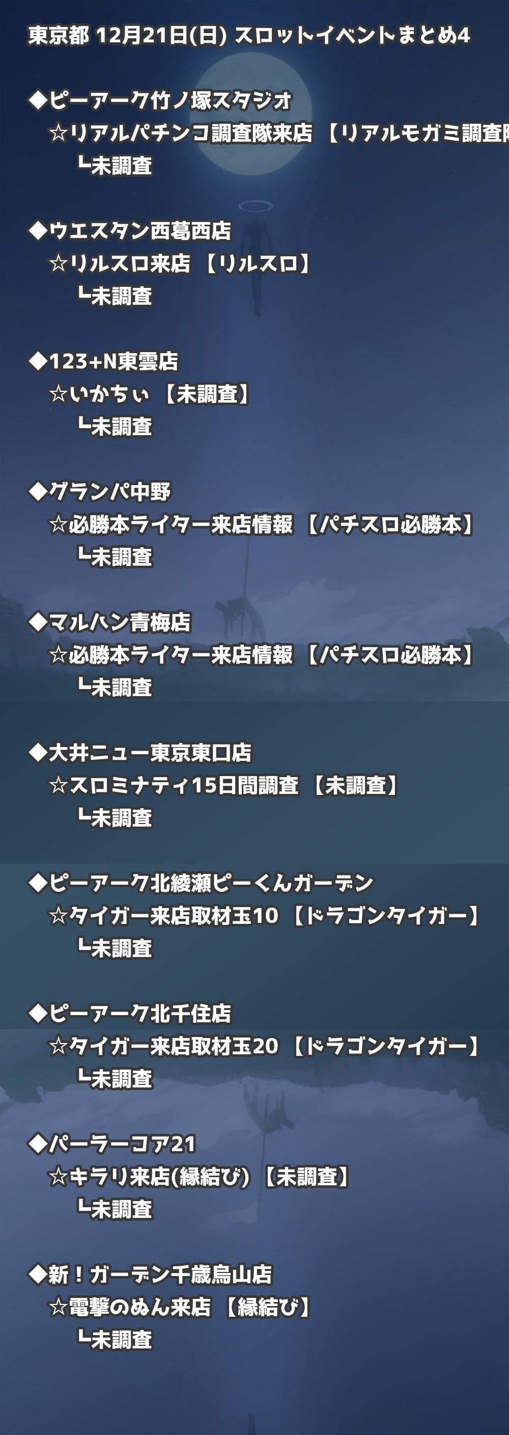 📊 東京都 12月21日(日) 勝てるパチンコ・スロット取材店舗一覧|おすすめ順