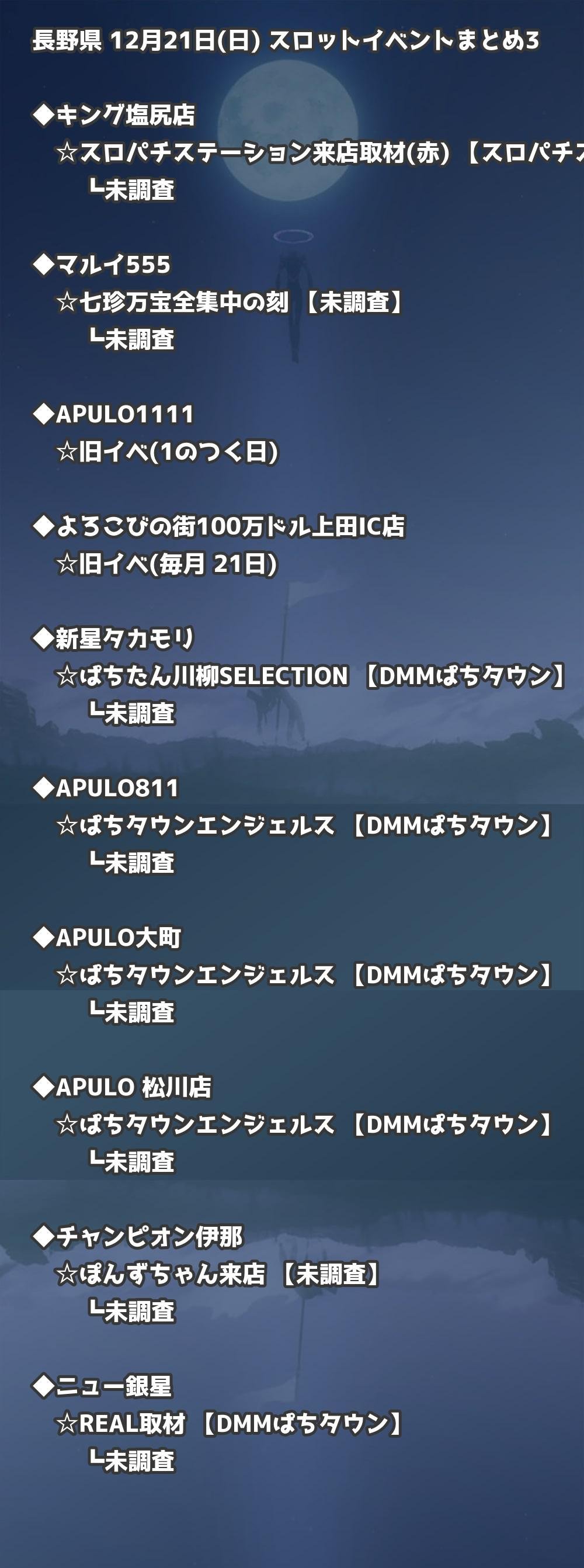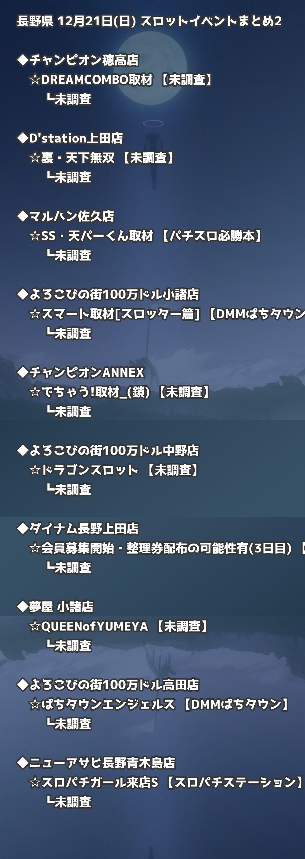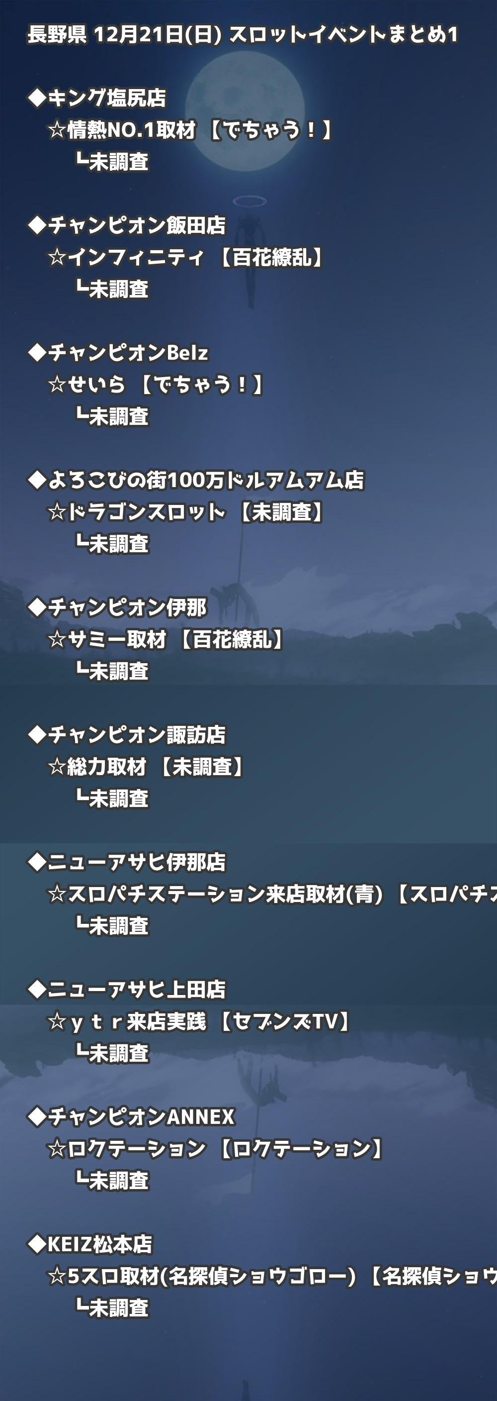 📊 長野県 12月21日(日) 勝てるパチンコ・スロット取材店舗一覧|おすすめ順