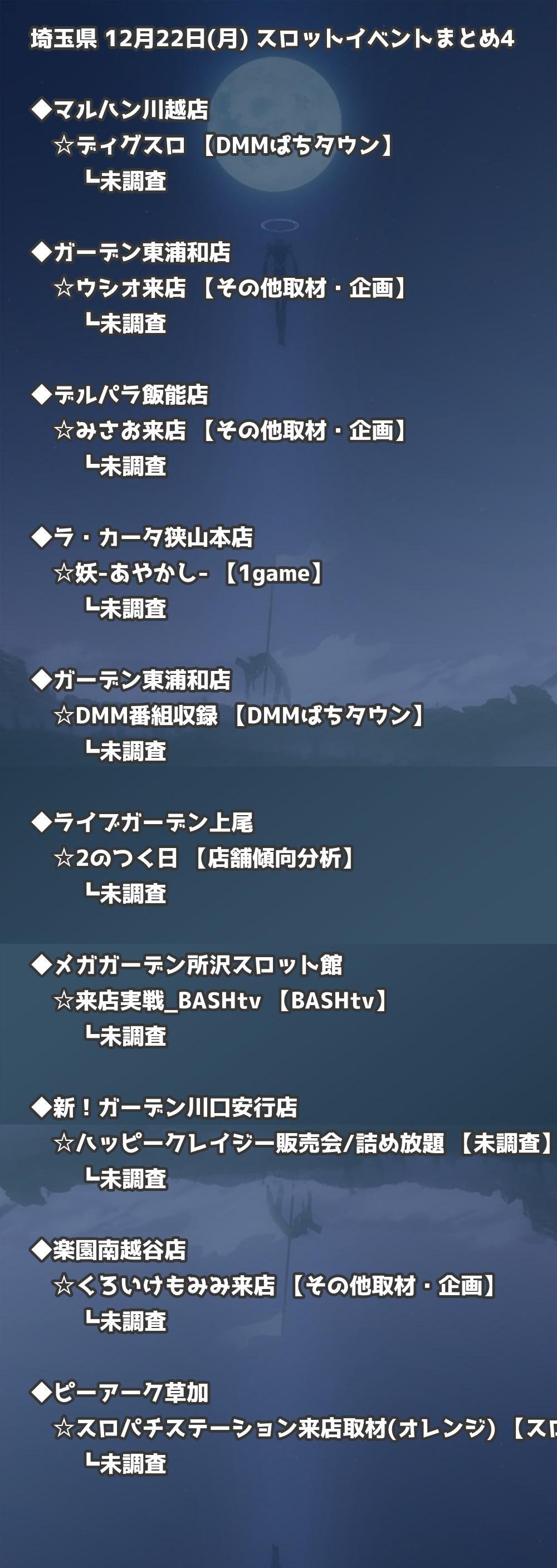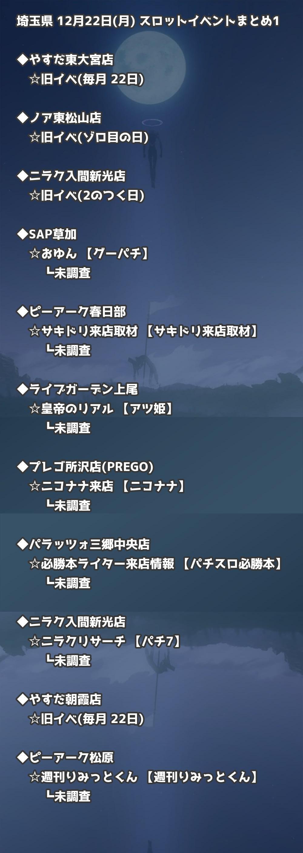 【埼玉県】12月22日(月) パチンコホールイベント取材まとめ記事です。