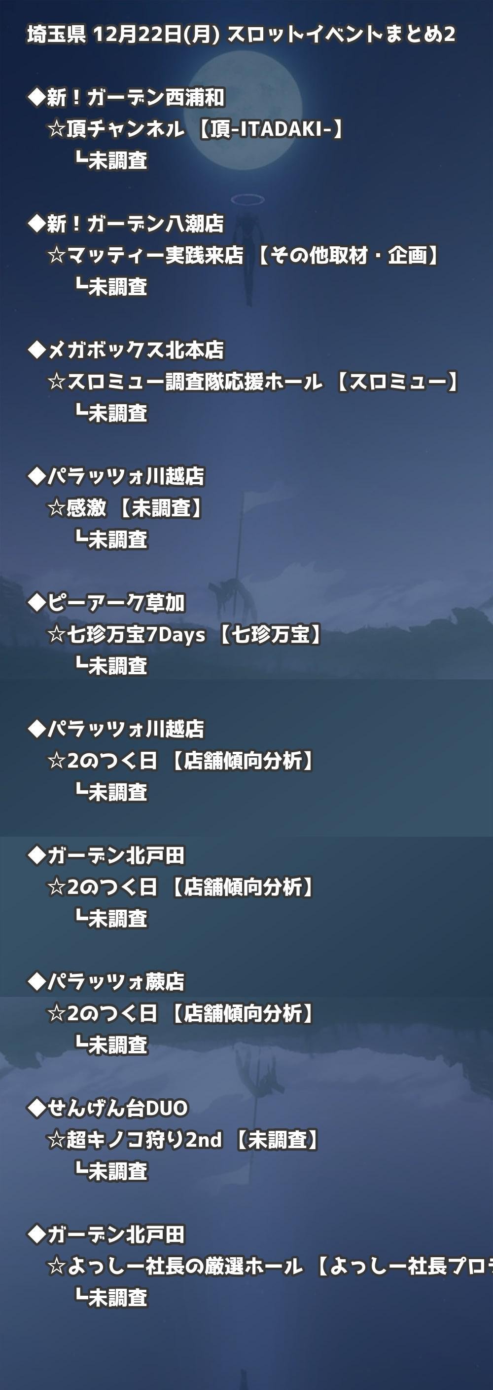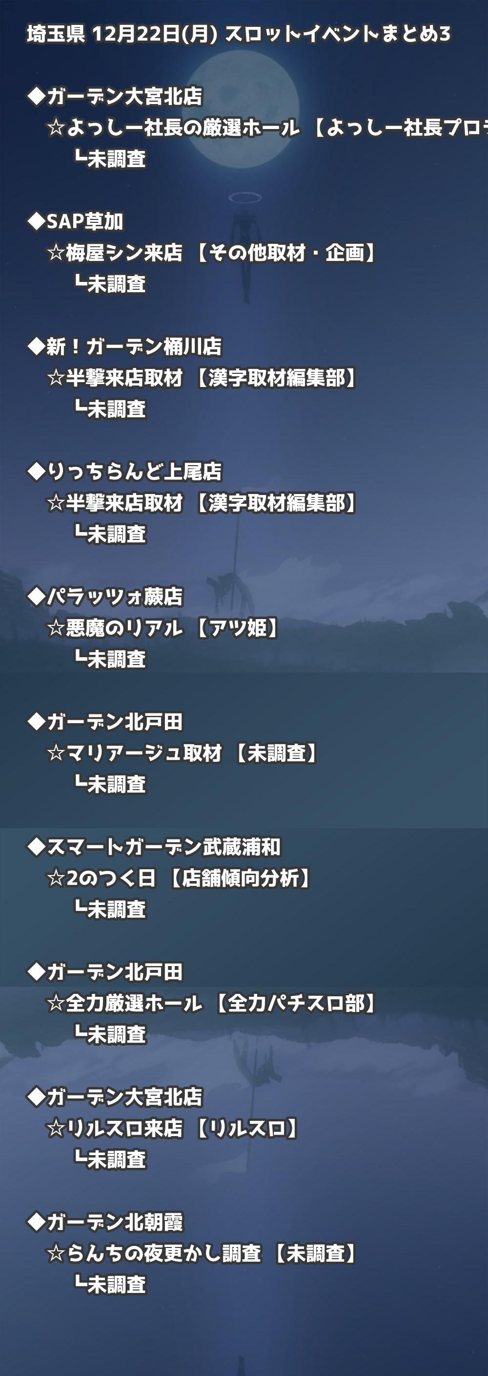 ※店舗結果掲載済 【埼玉】12月22日(月) 今日のスロット・パチンコ激熱イベント取材まとめ