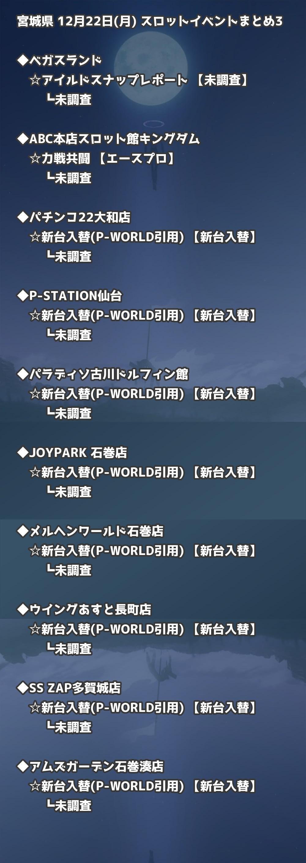 【宮城県】12月22日(月) パチンコホールイベント取材まとめ記事です。