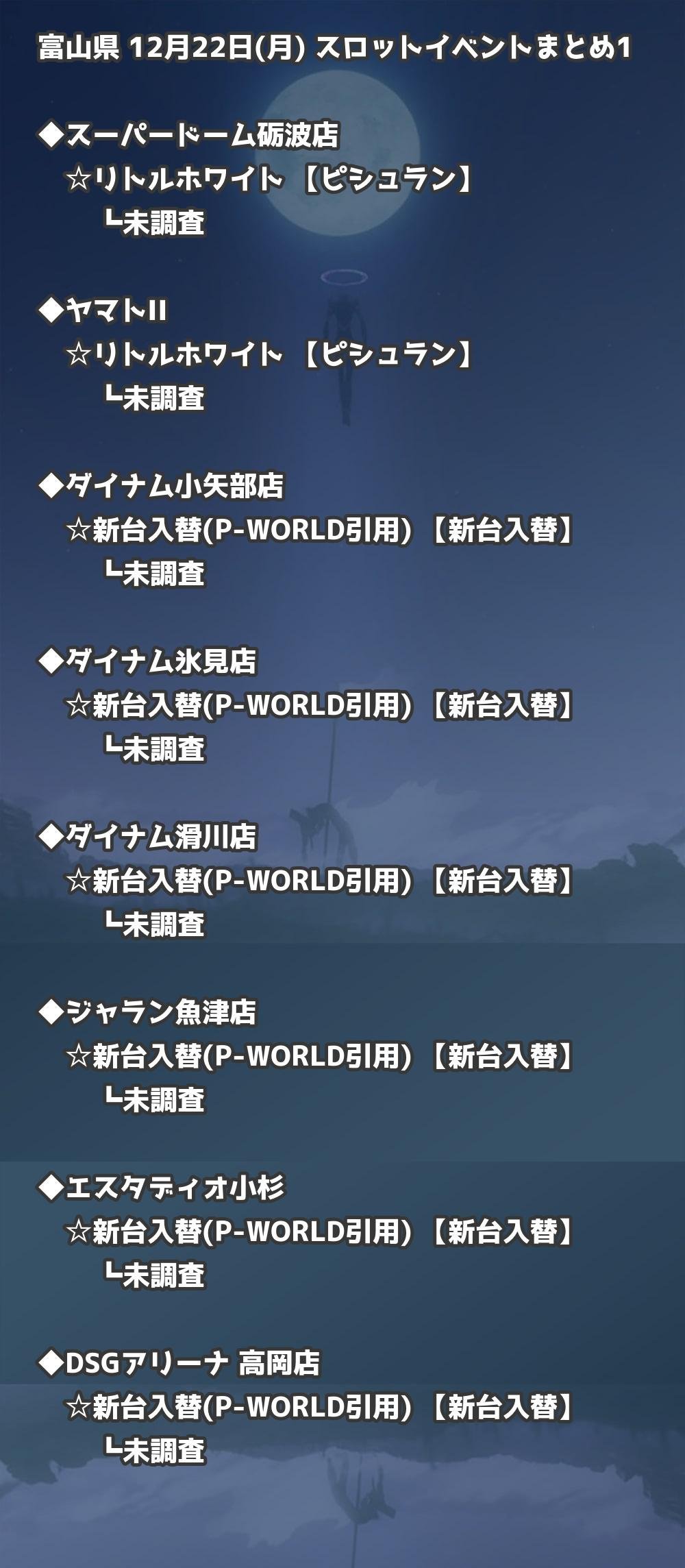 【富山県】12月22日(月) パチンコホールイベント取材まとめ記事です。