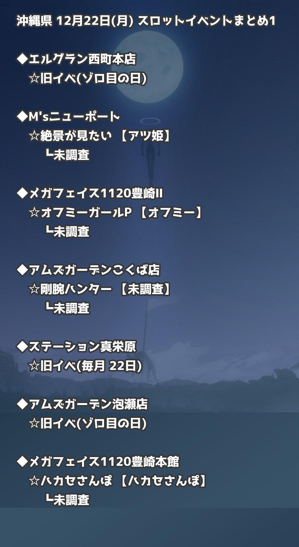 【沖縄県】12月22日(月) パチンコホールイベント取材まとめ記事です。