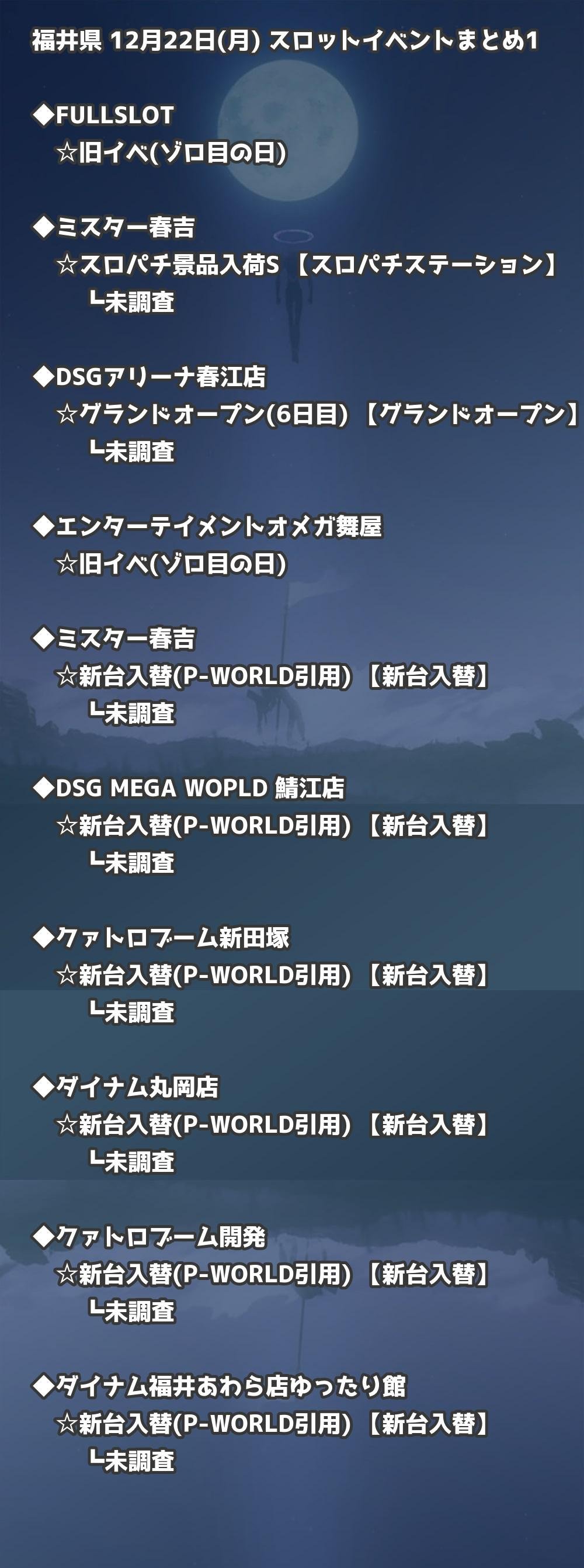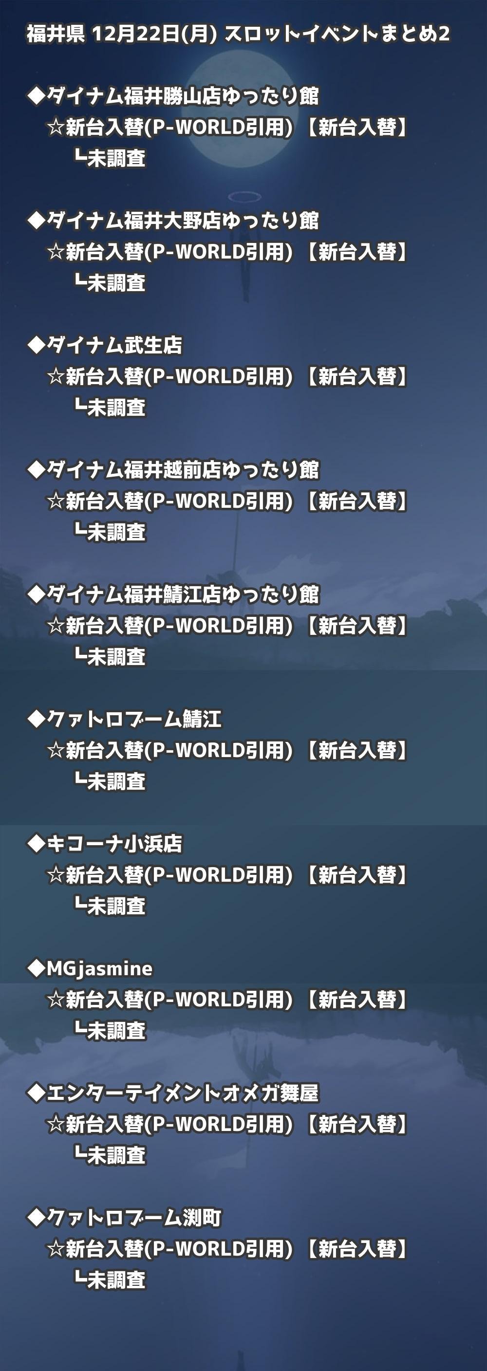 【福井県】12月22日(月) パチンコホールイベント取材まとめ記事です。
