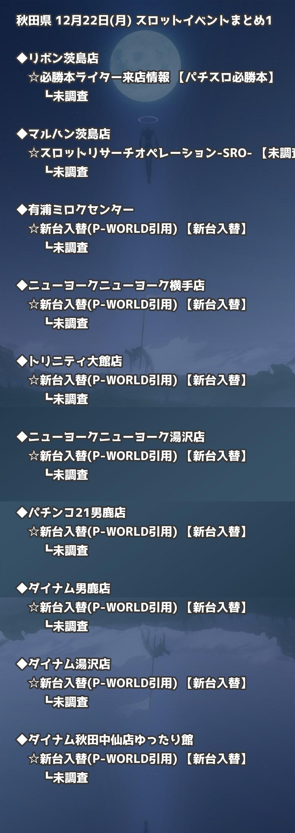 【秋田県】12月22日(月) パチンコホールイベント取材まとめ記事です。