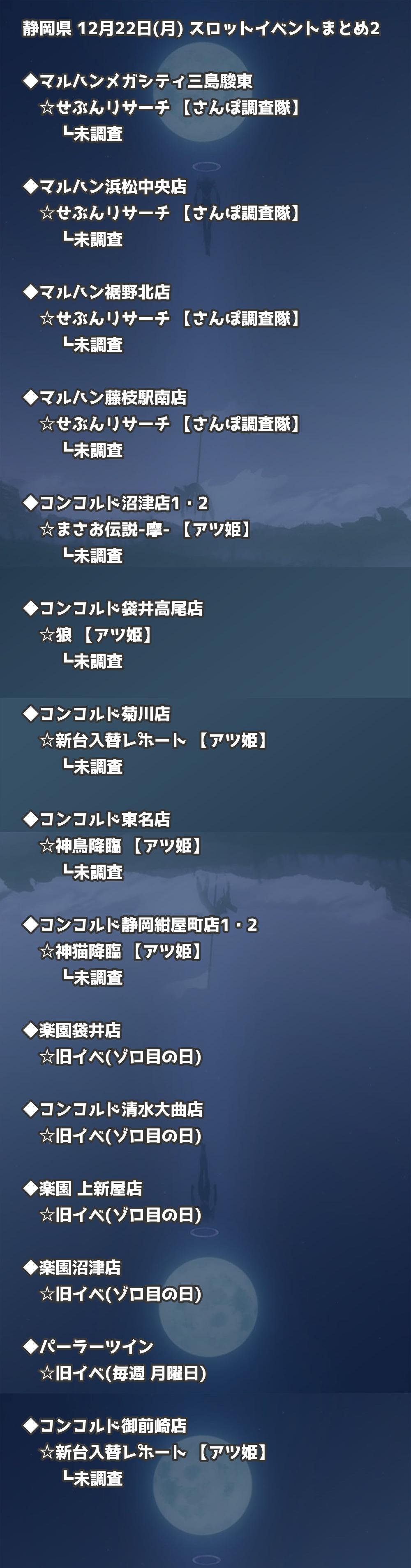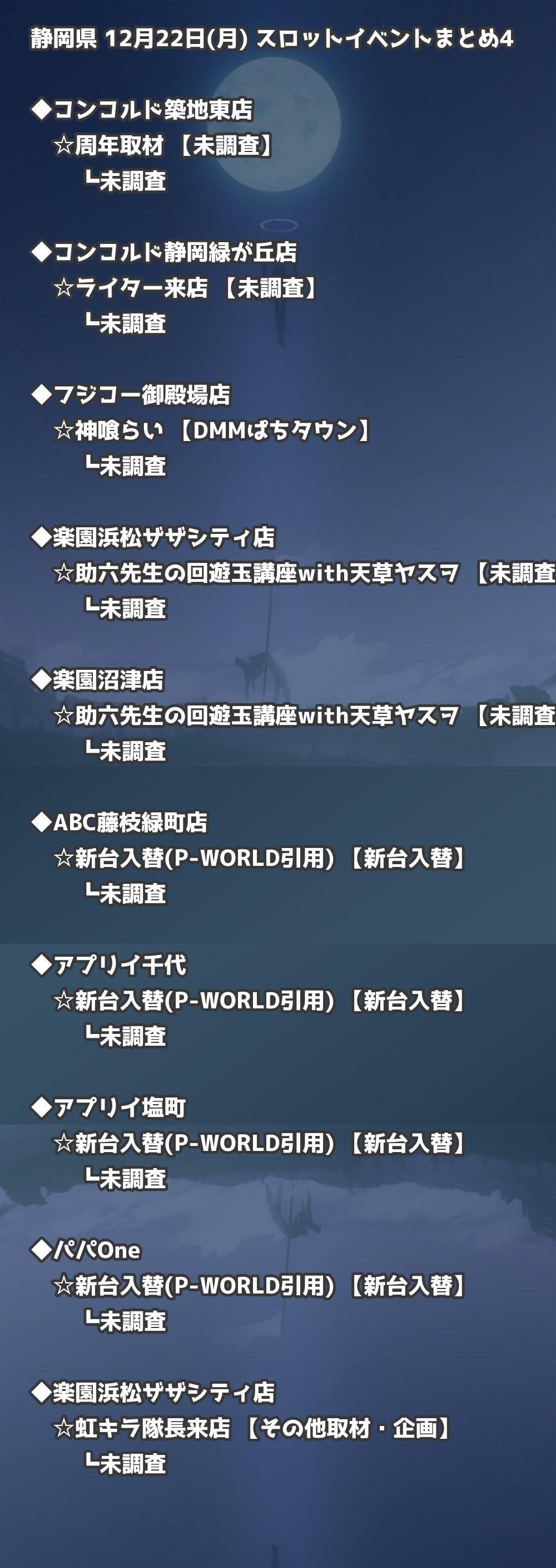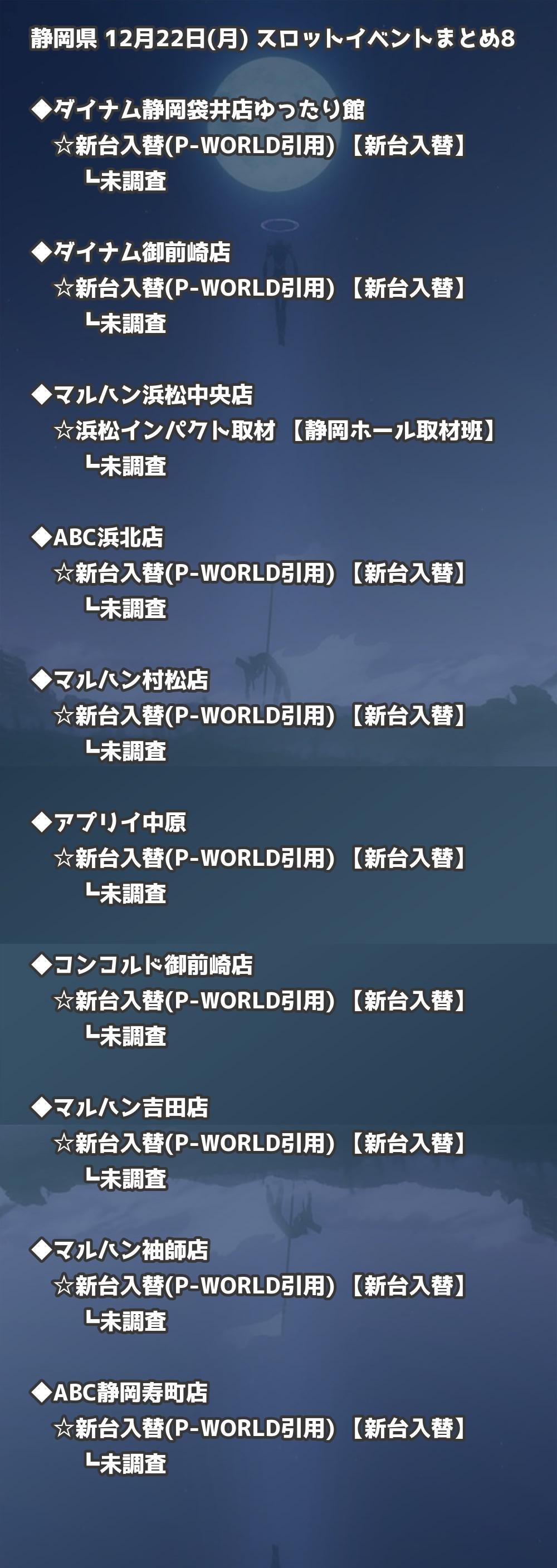【静岡県】12月22日(月) パチンコホールイベント取材まとめ記事です。
