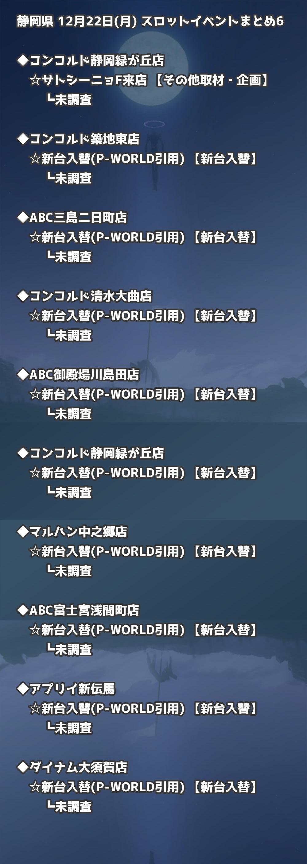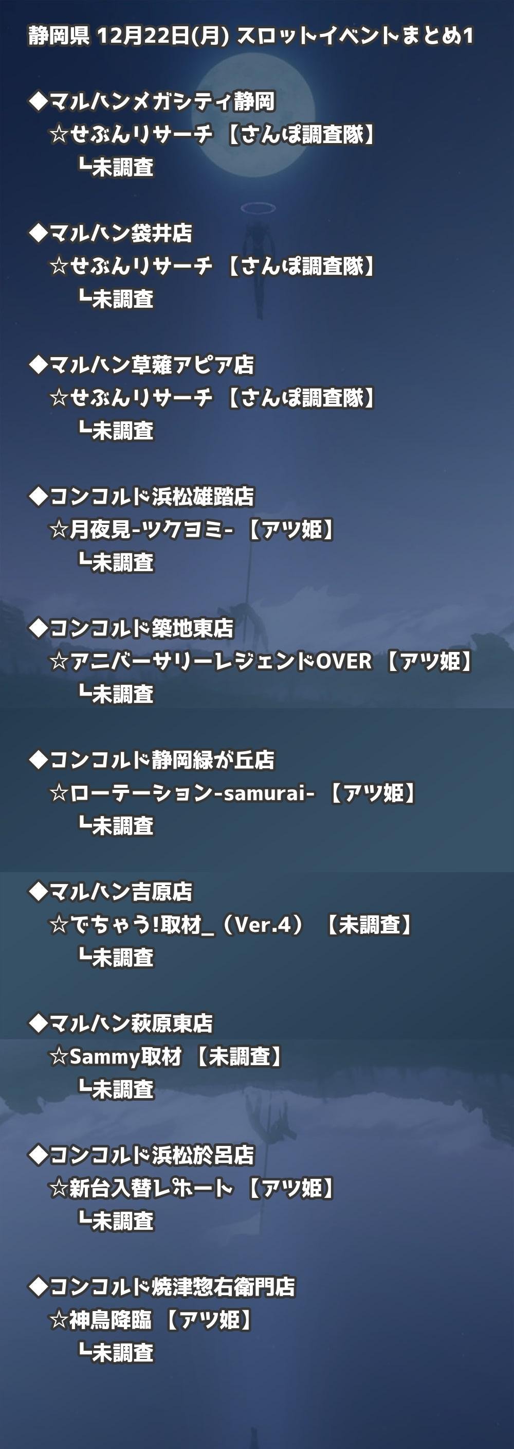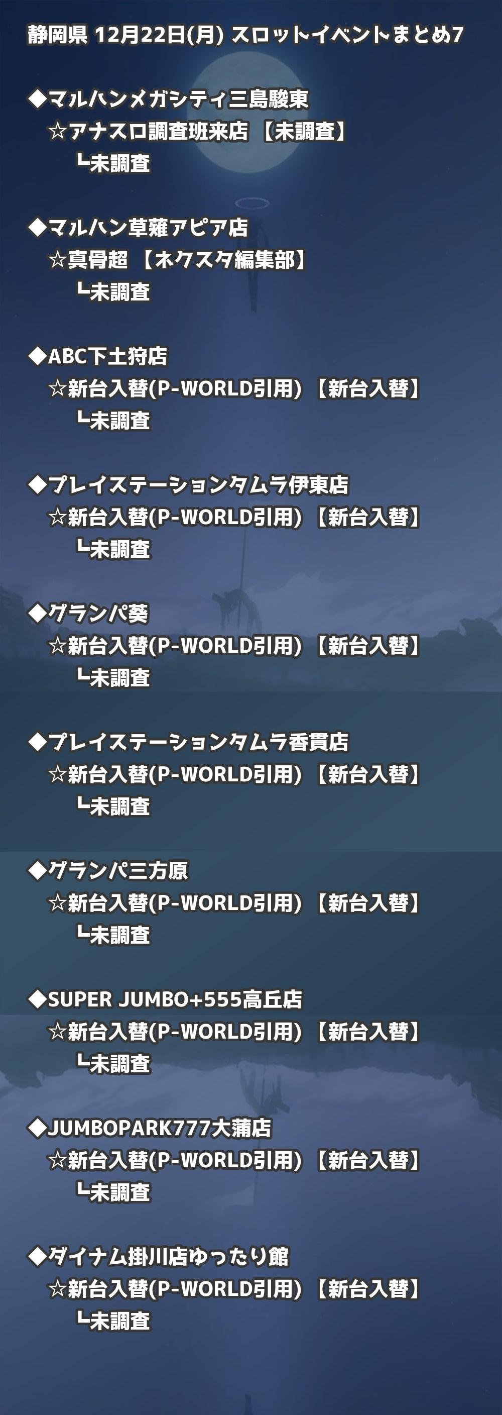 【静岡県】12月22日(月) パチンコホールイベント取材まとめ記事です。