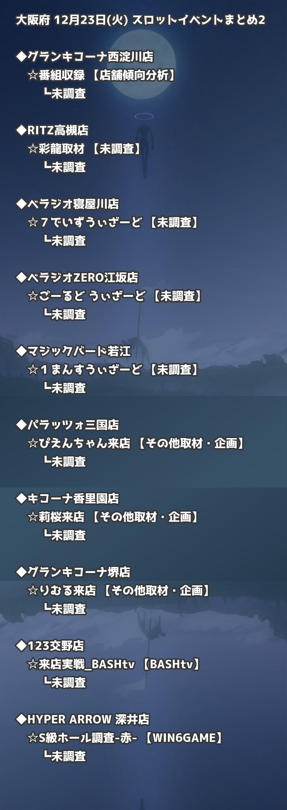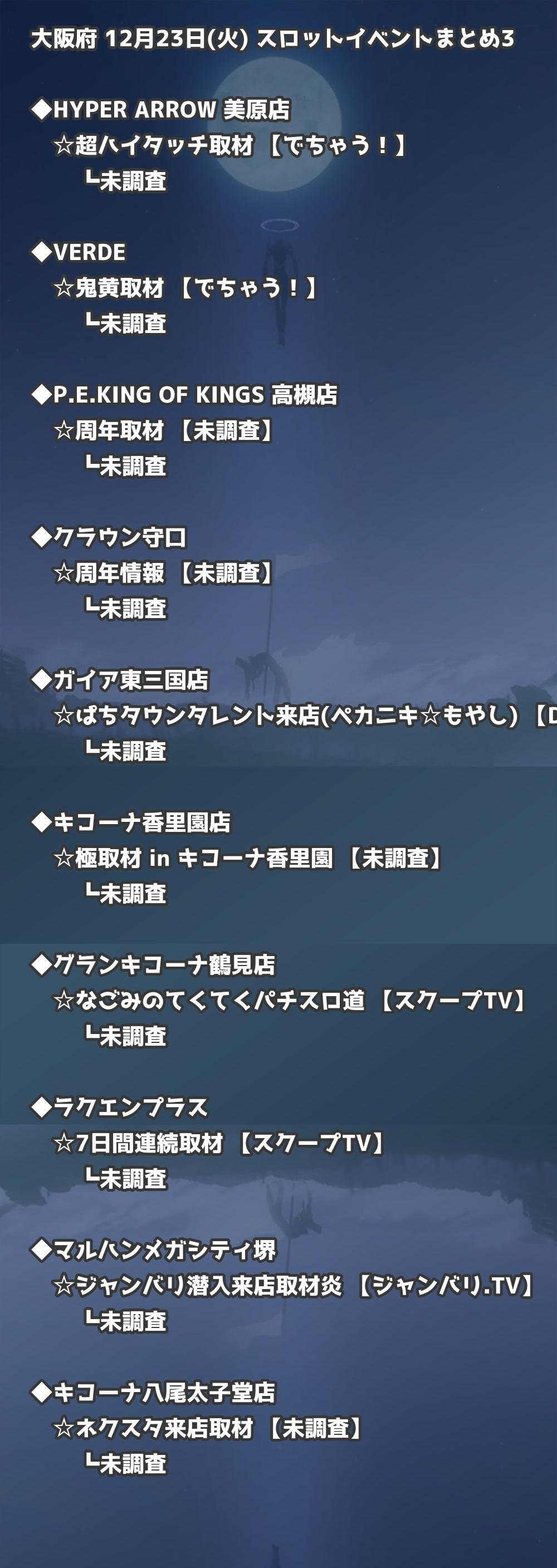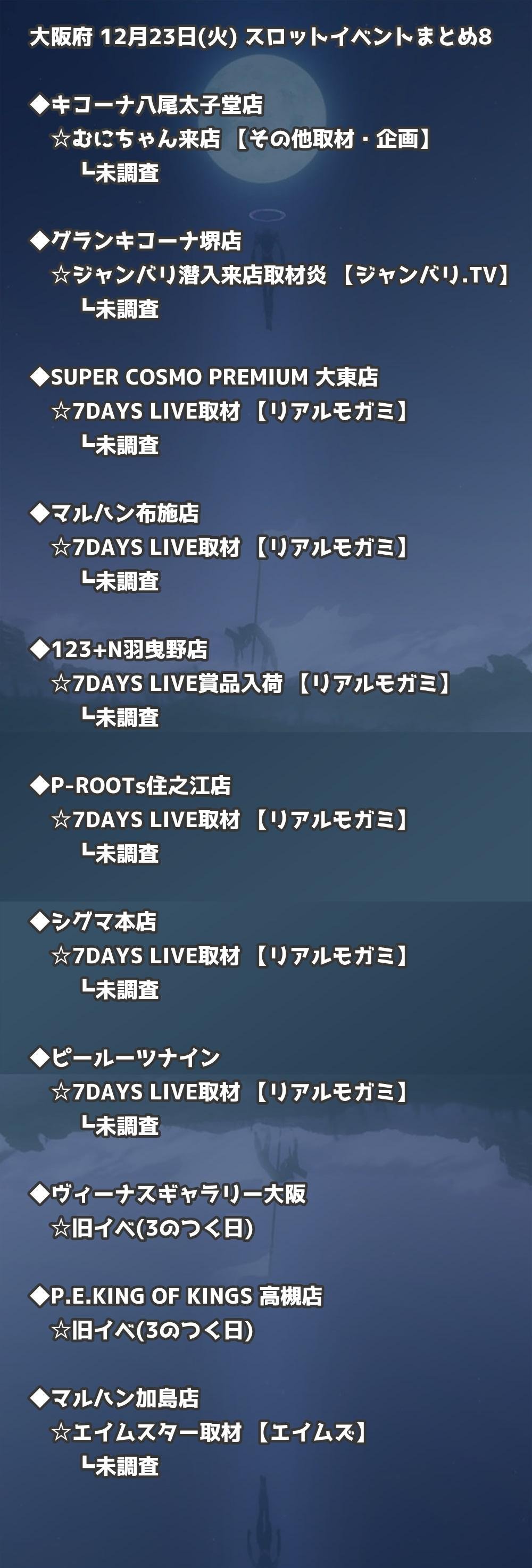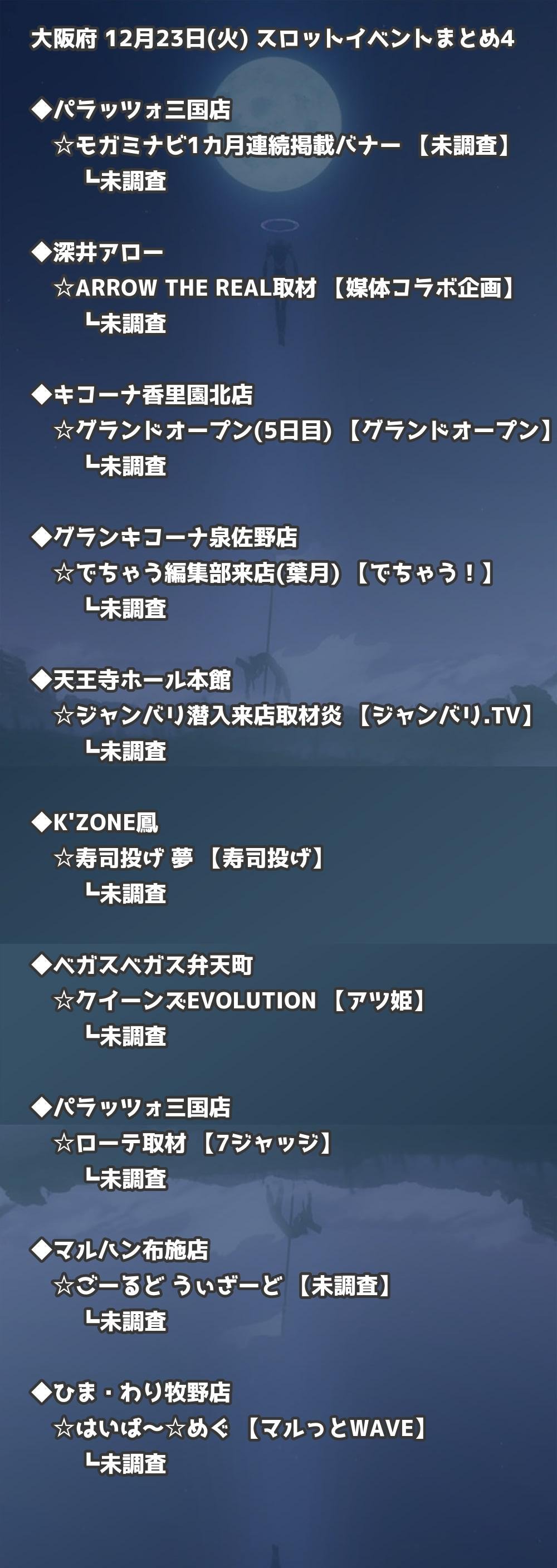 【大阪府】12月23日(火) パチンコホールイベント取材まとめ記事です。