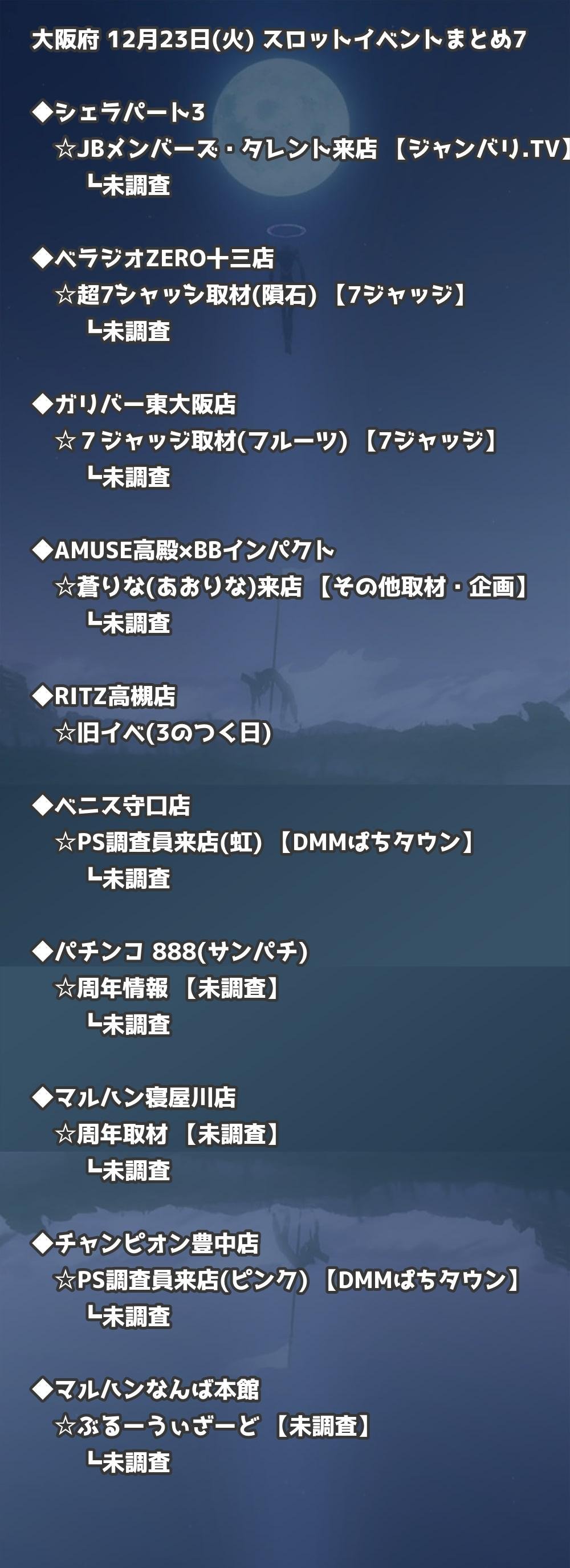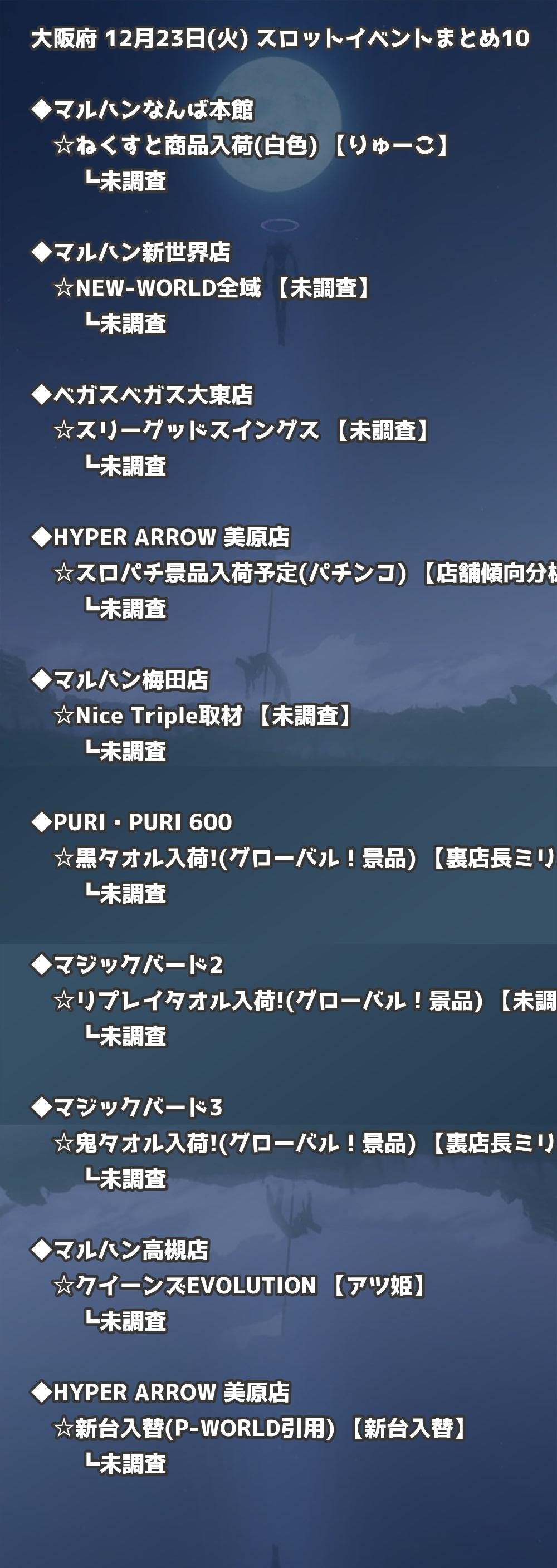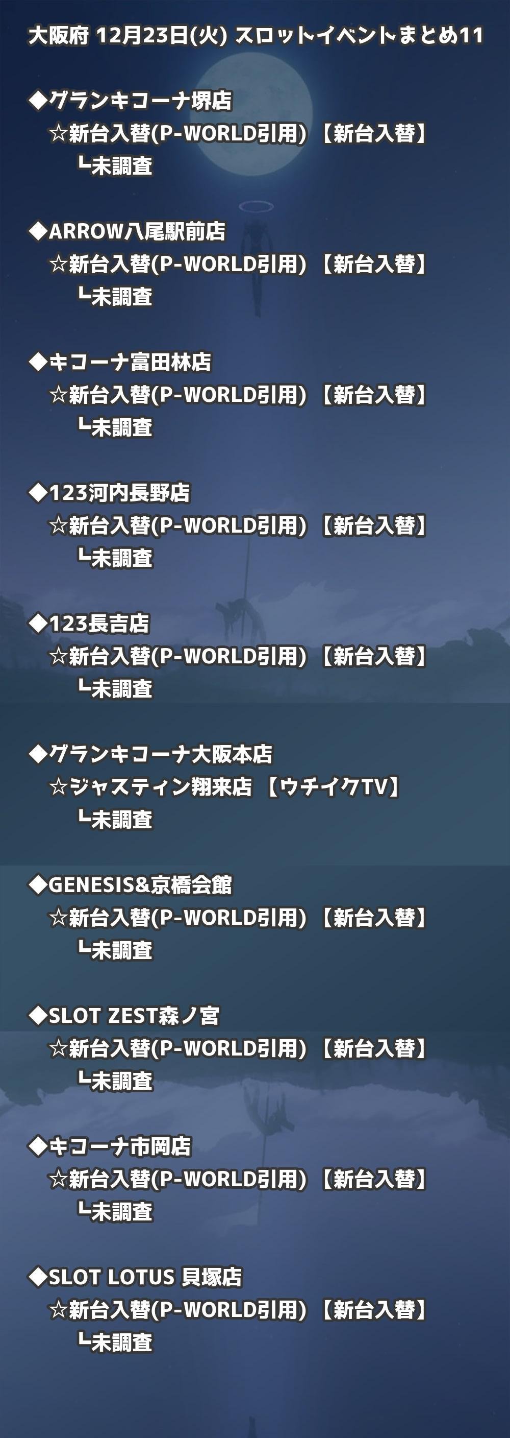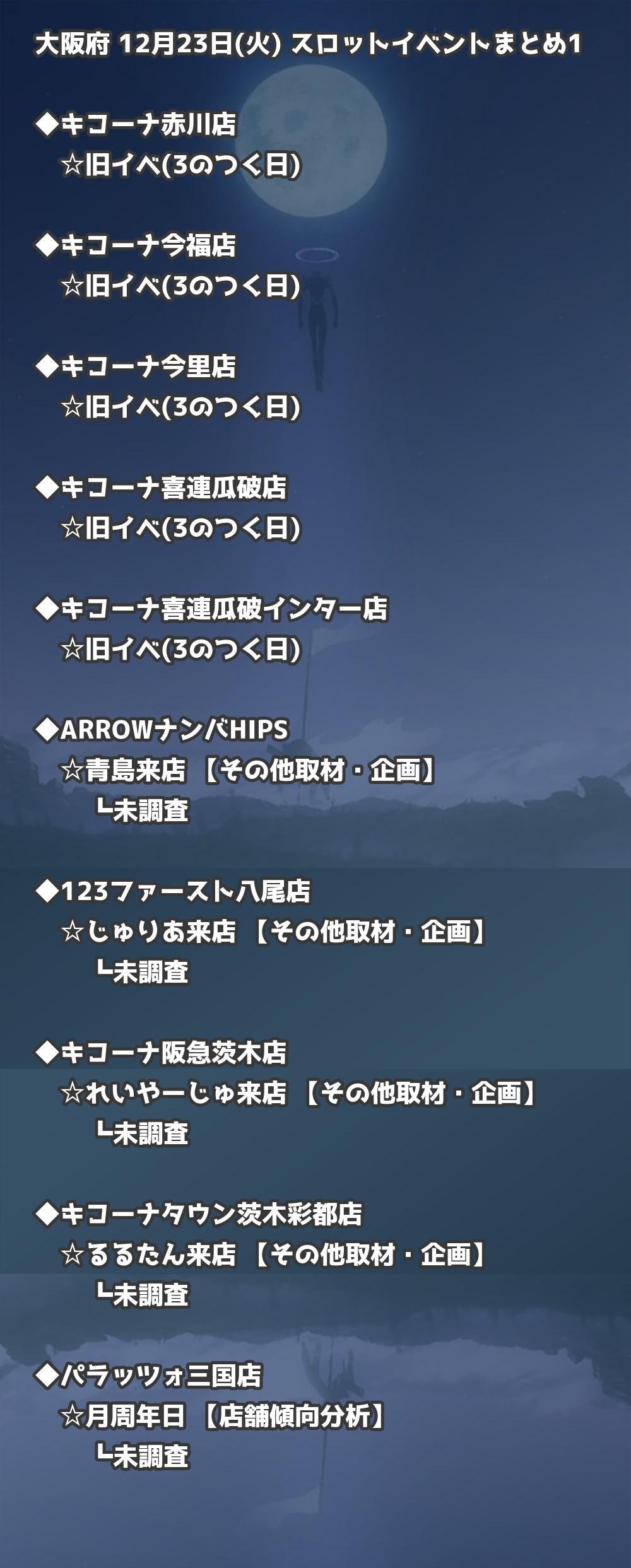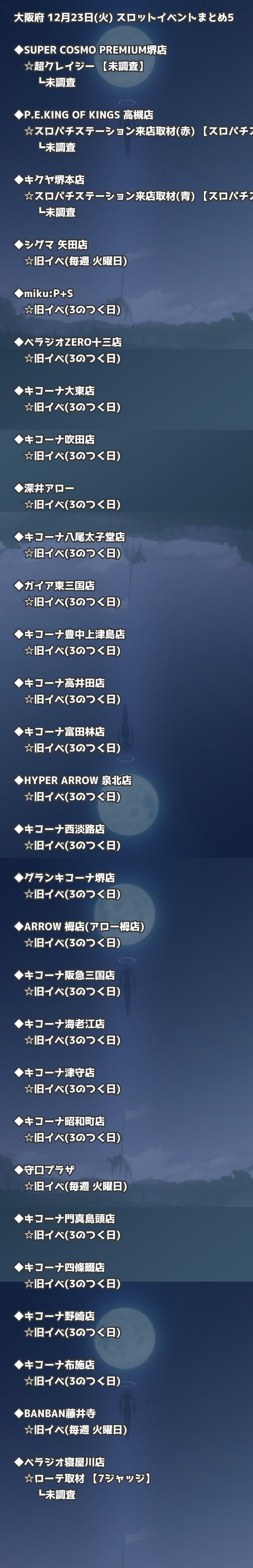 【大阪府】12月23日(火) パチンコホールイベント取材まとめ記事です。