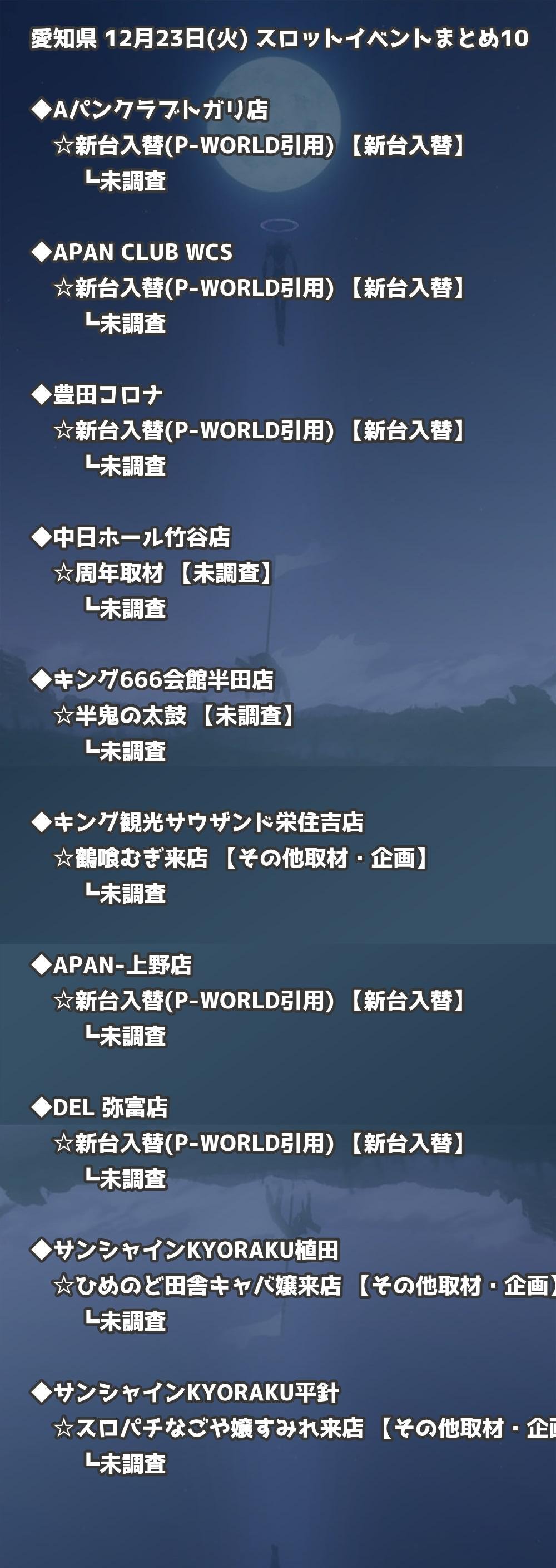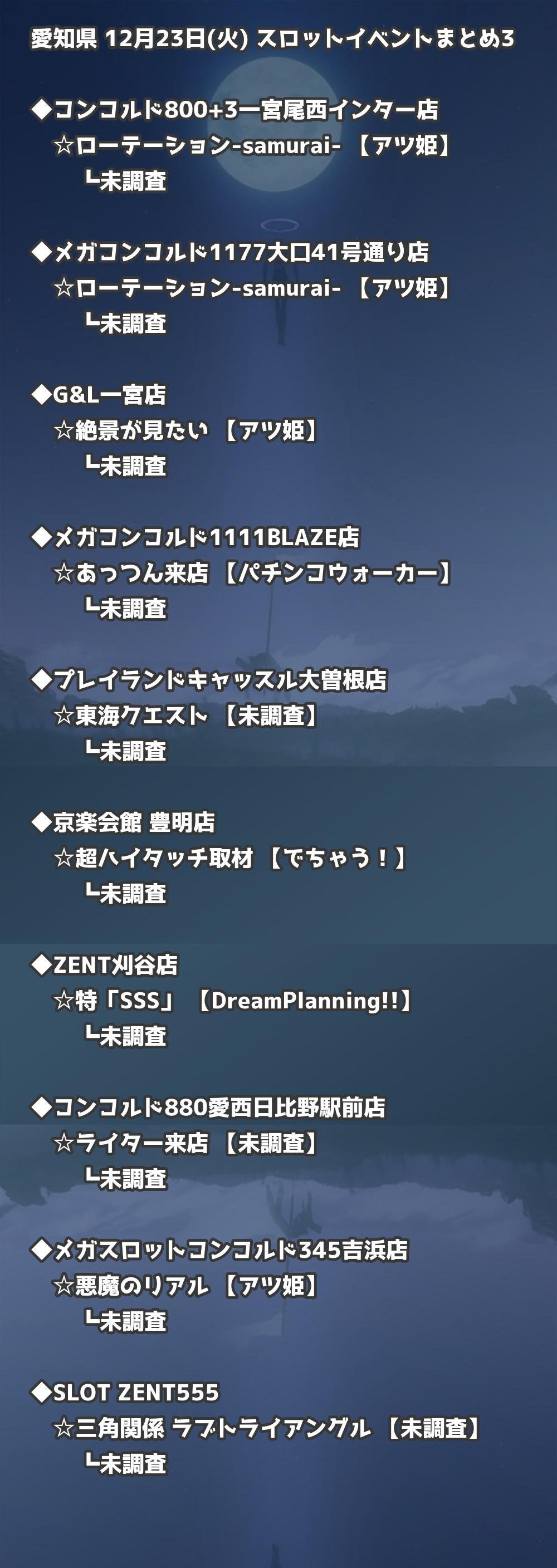 【愛知県】12月23日(火) パチンコホールイベント取材まとめ記事です。