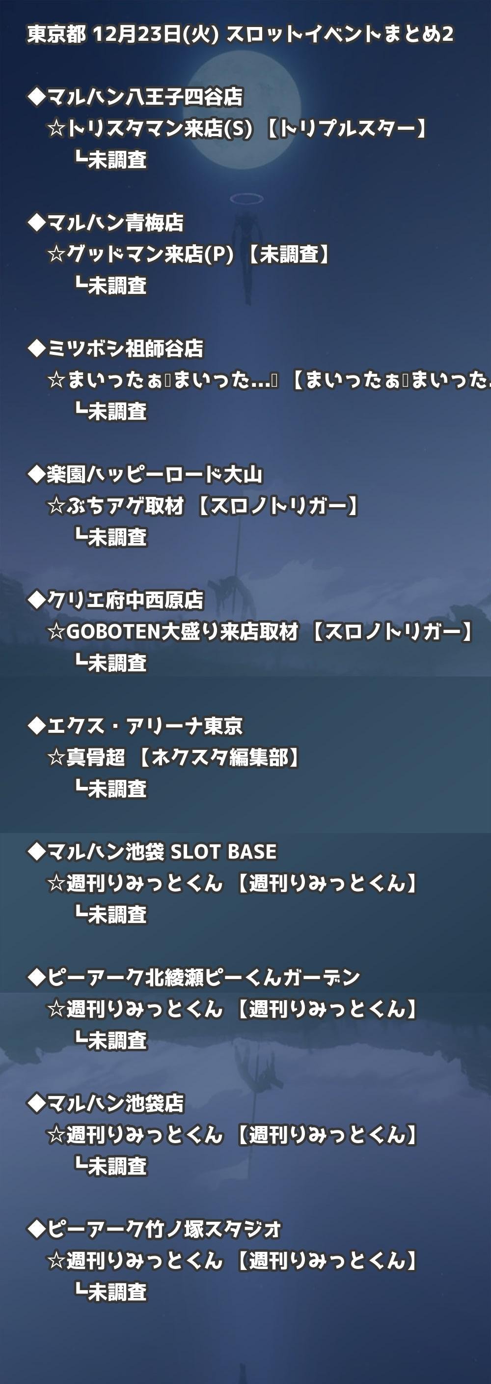 【東京都】12月23日(火) パチンコホールイベント取材まとめ記事です。
