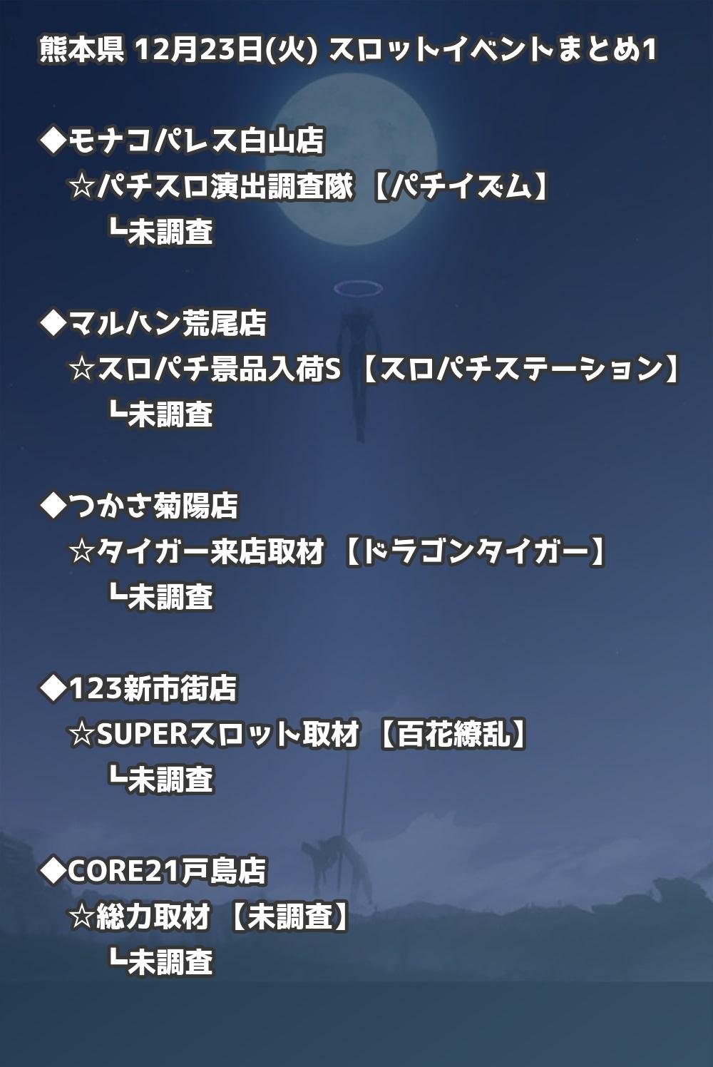 【熊本県】12月23日(火) パチンコホールイベント取材まとめ記事です。