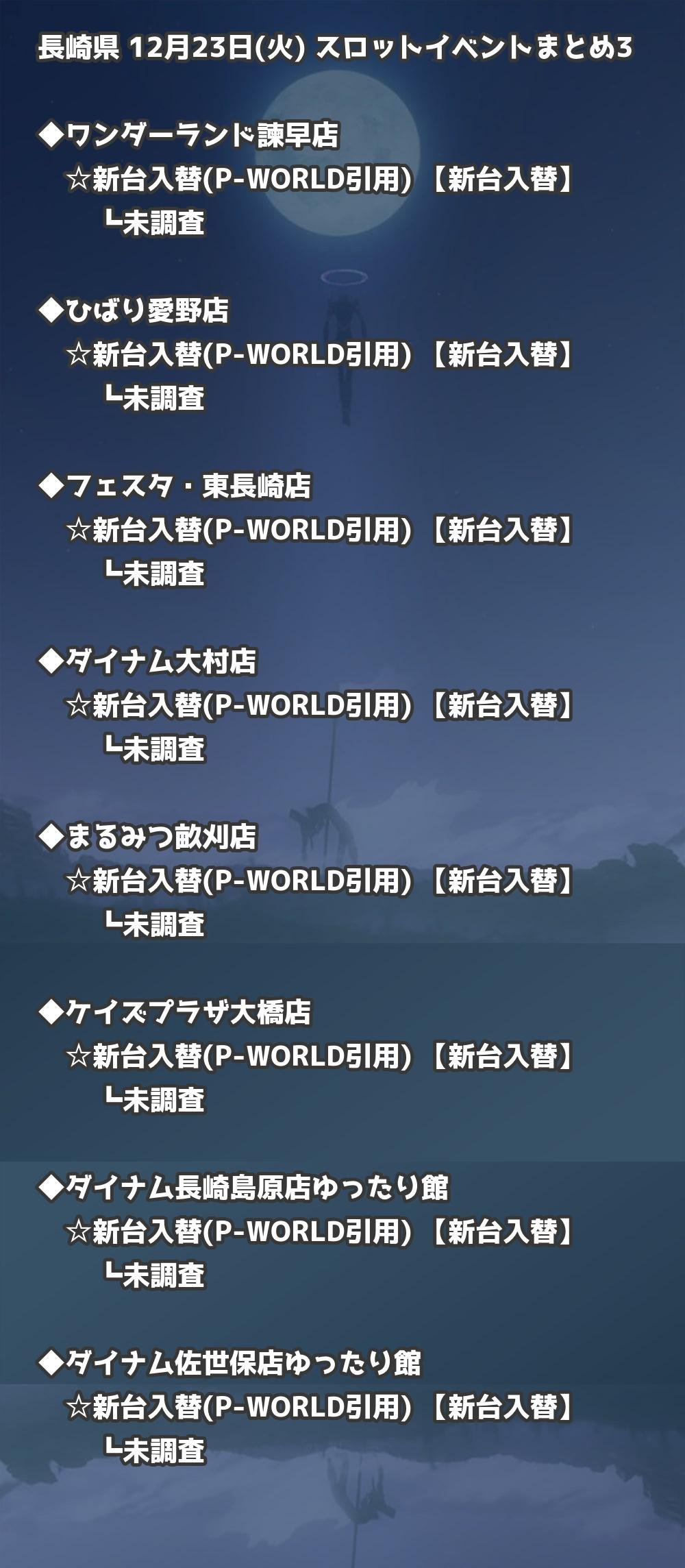 【長崎県】12月23日(火) パチンコホールイベント取材まとめ記事です。