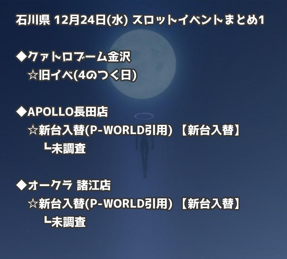 【石川県】12月24日(水) パチンコホールイベント取材まとめ記事です。