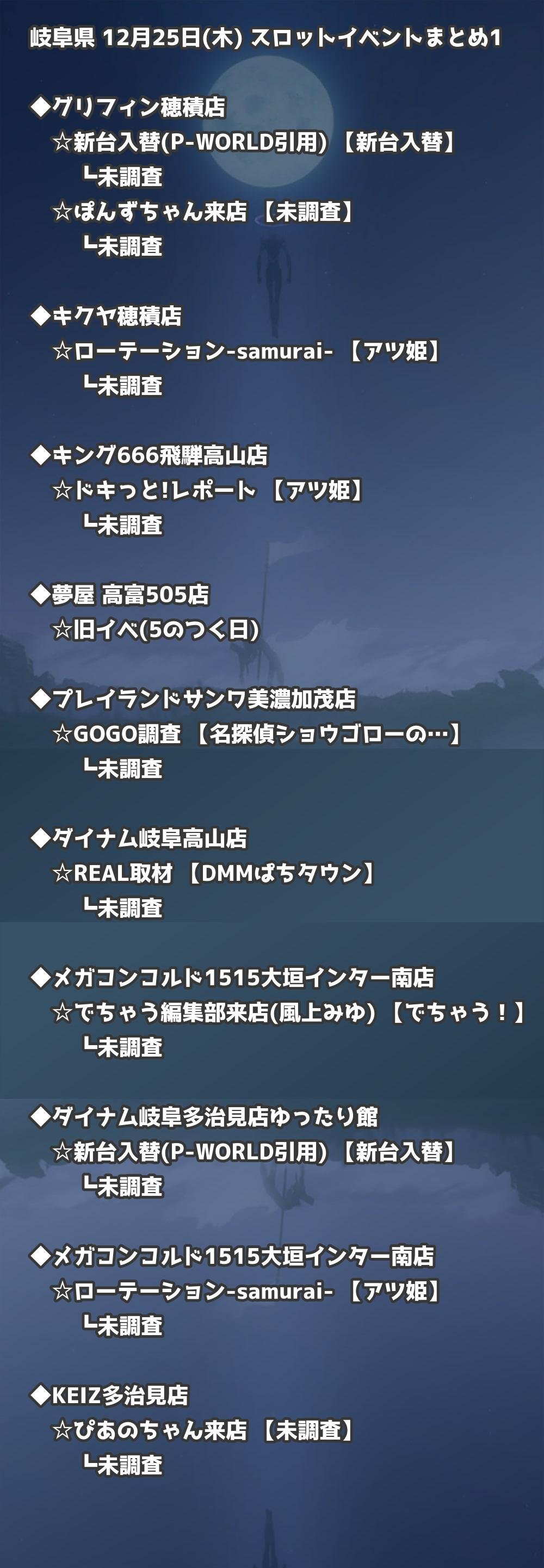 【岐阜県】12月25日(木) パチンコホールイベント取材まとめ記事です。