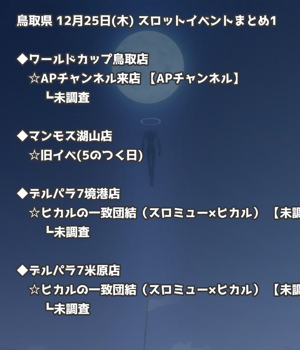 📊 鳥取県 12月25日(木) 勝てるパチンコ・スロット取材店舗一覧|おすすめ順