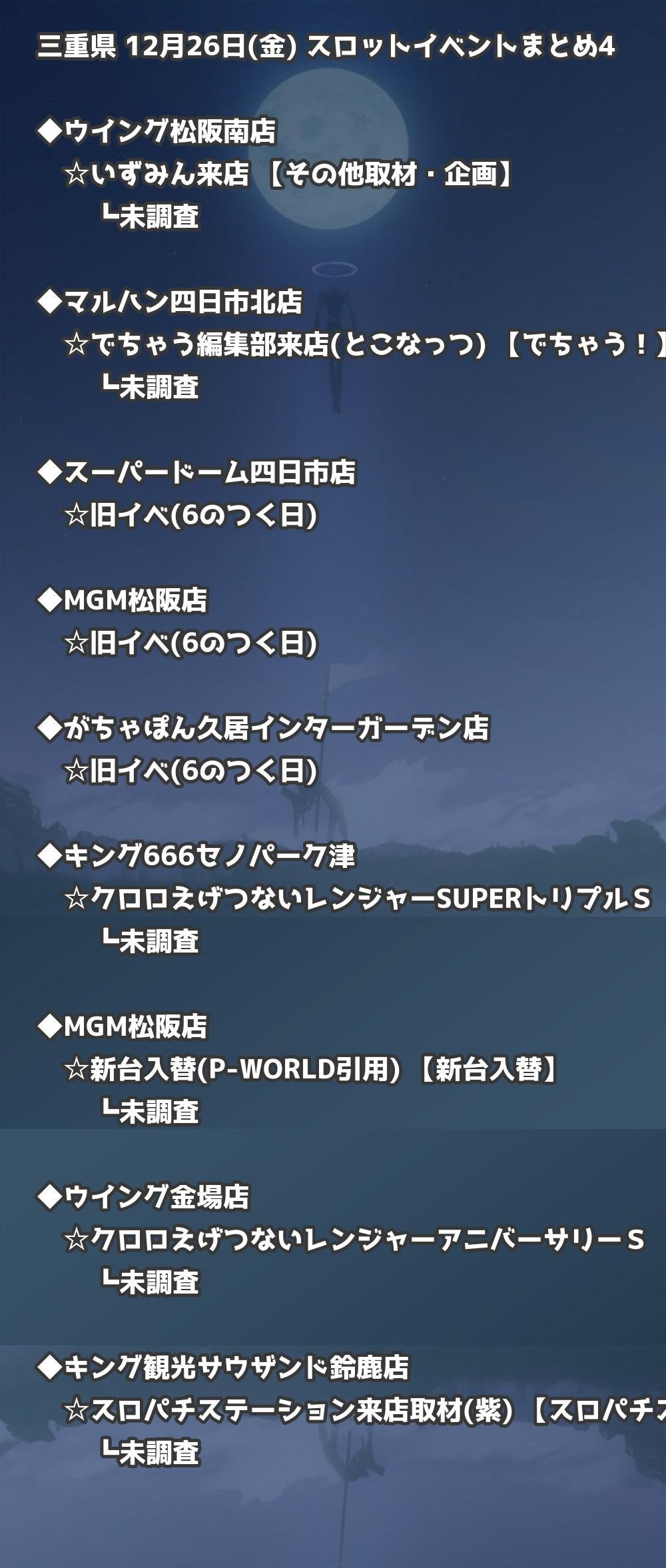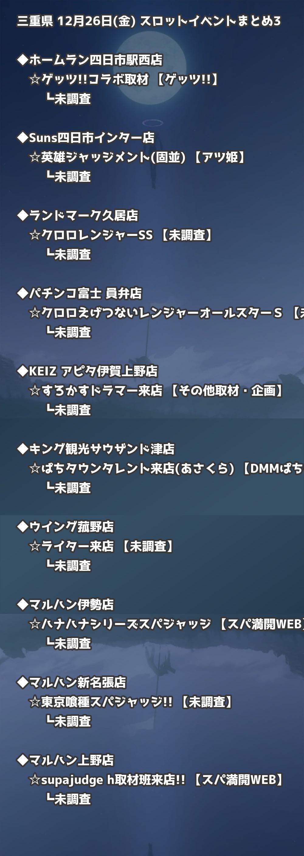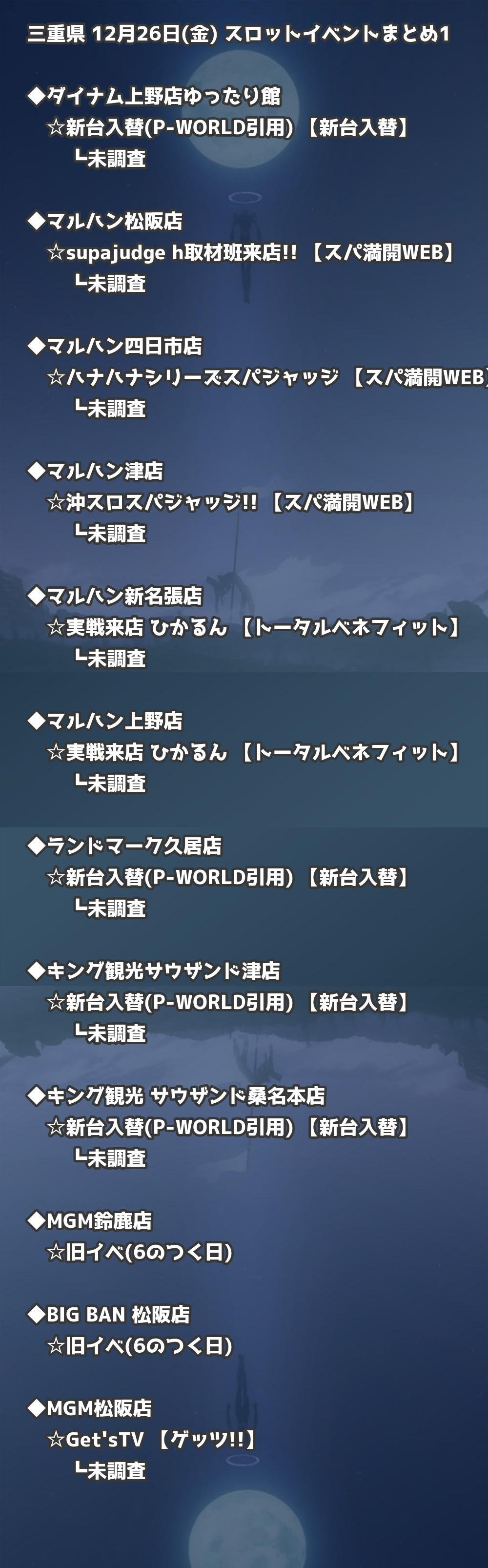 【三重県】12月26日(金) パチンコホールイベント取材まとめ記事です。
