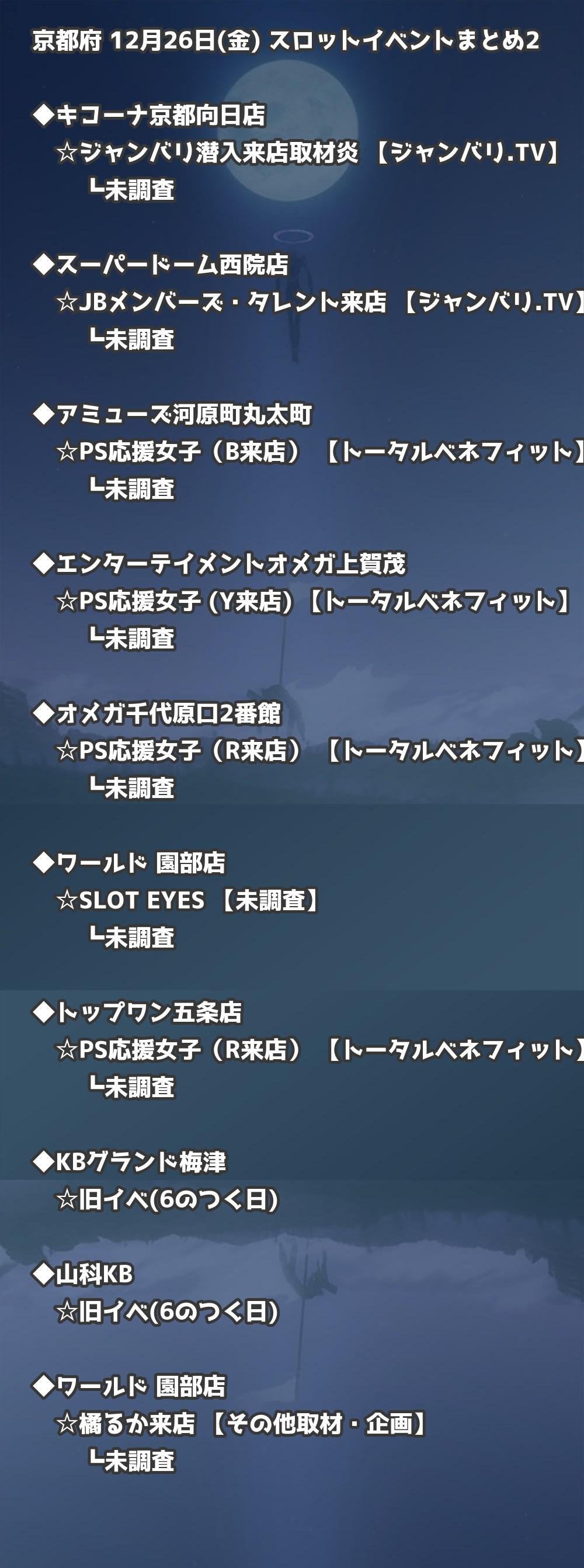 📊 京都府 12月26日(金) 勝てるパチンコ・スロット取材店舗一覧|おすすめ順