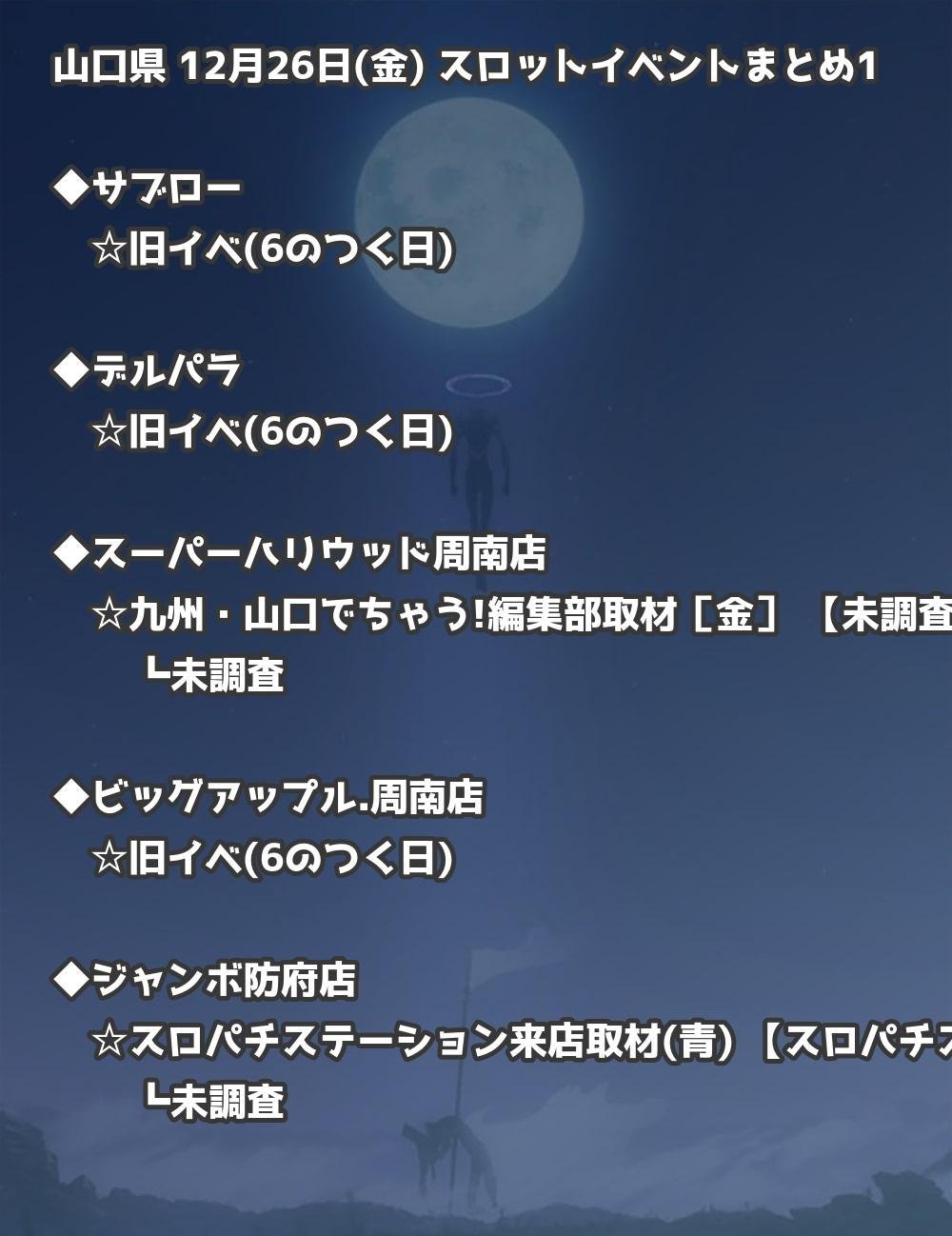 【山口県】12月26日(金) パチンコホールイベント取材まとめ記事です。