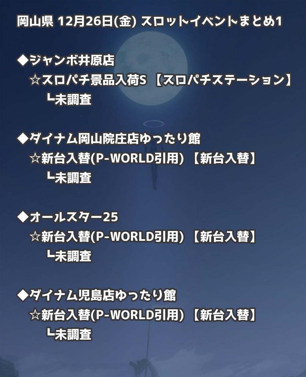 【岡山県】12月26日(金) パチンコホールイベント取材まとめ記事です。