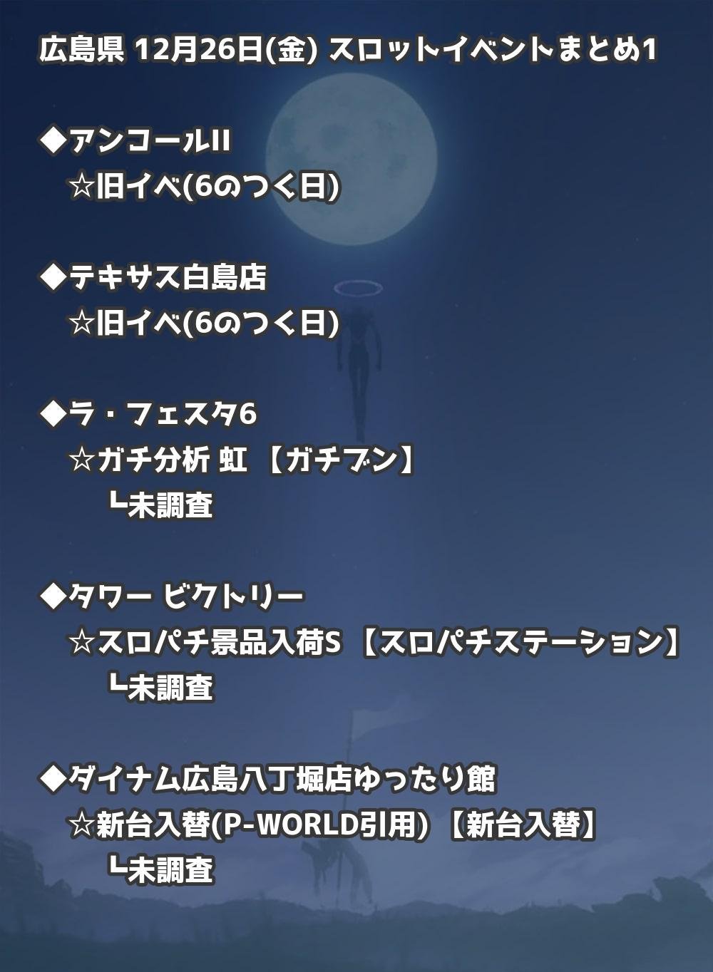 【広島県】12月26日(金) パチンコホールイベント取材まとめ記事です。