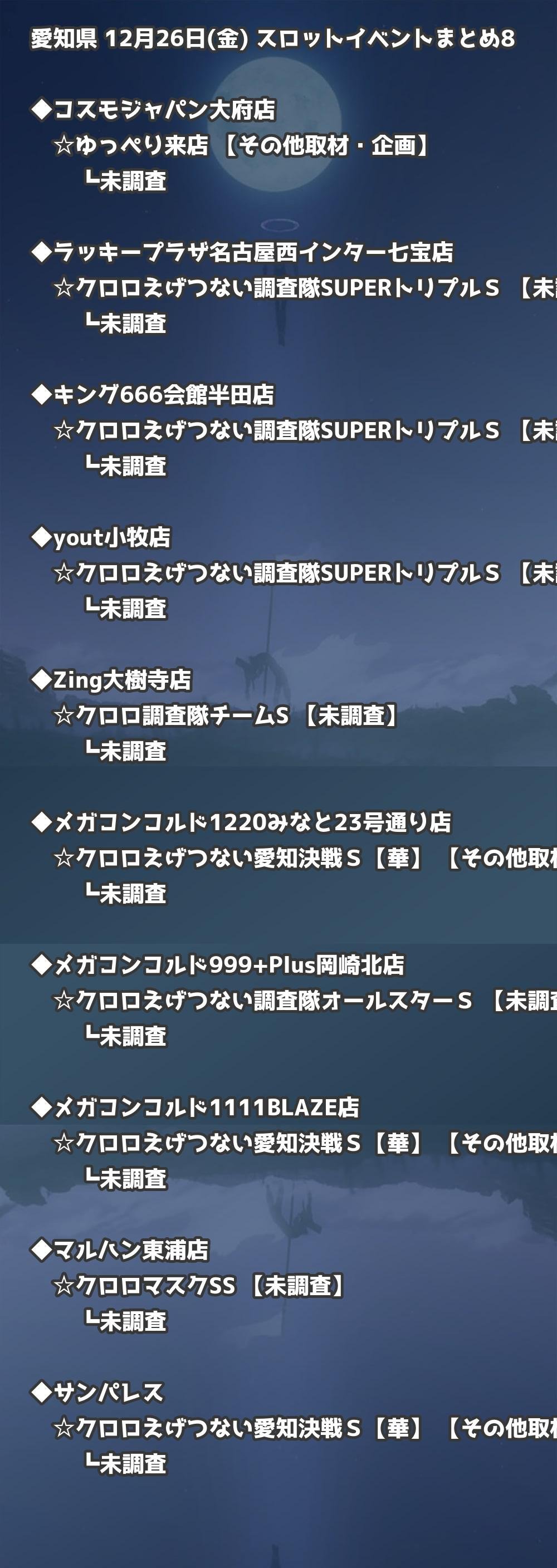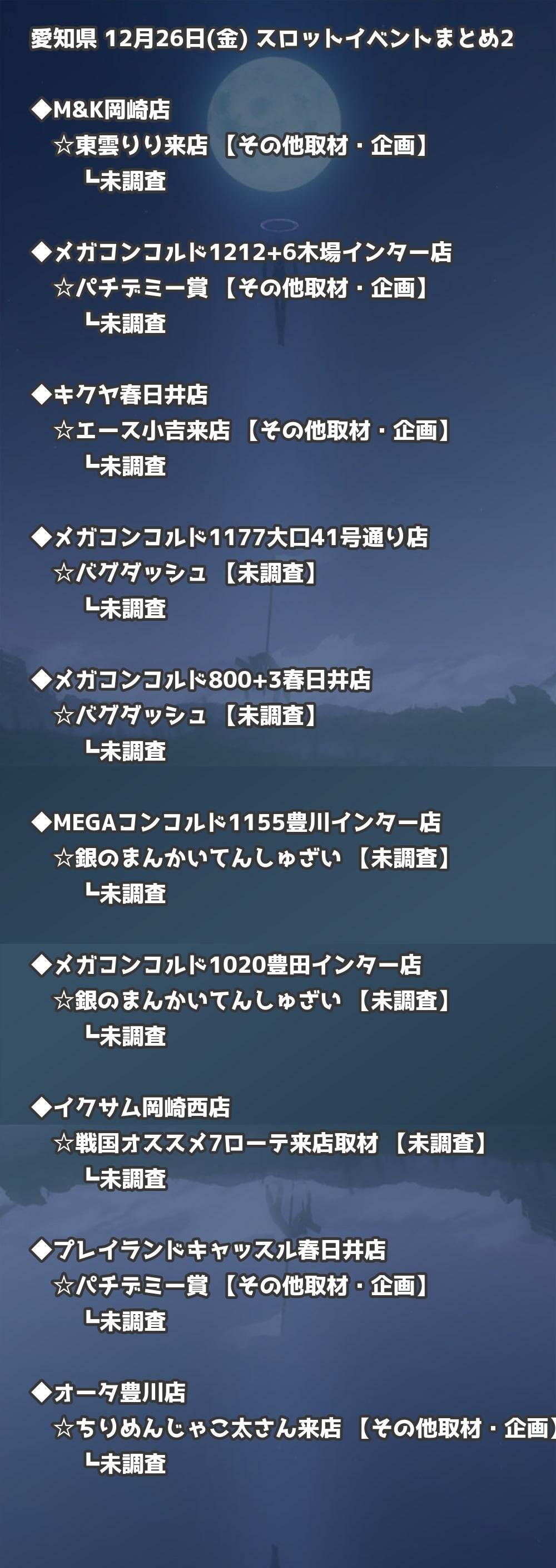 【愛知県】12月26日(金) パチンコホールイベント取材まとめ記事です。