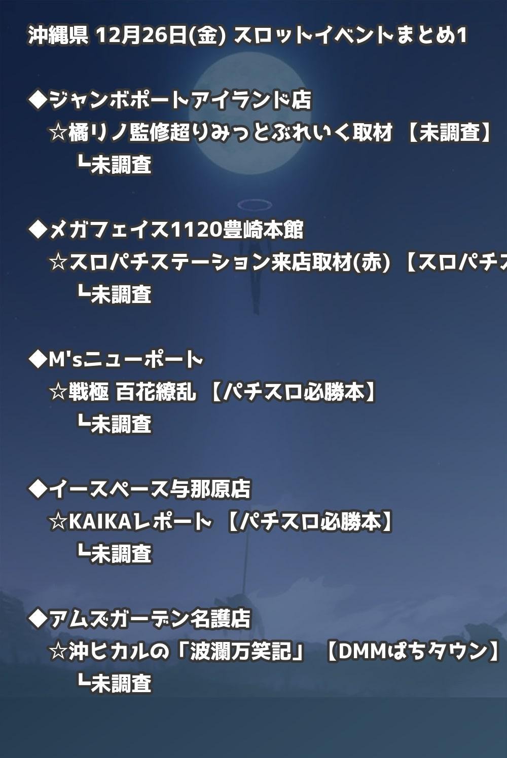 【沖縄県】12月26日(金) パチンコホールイベント取材まとめ記事です。