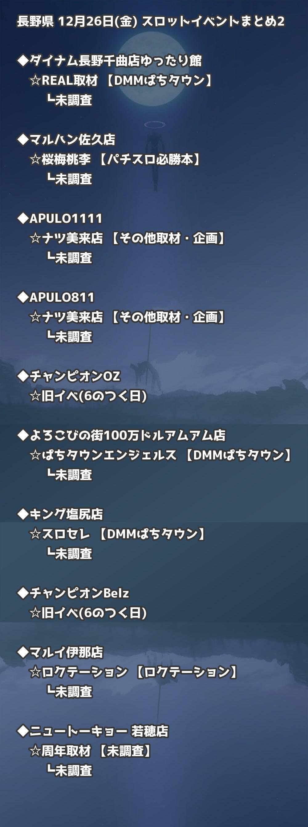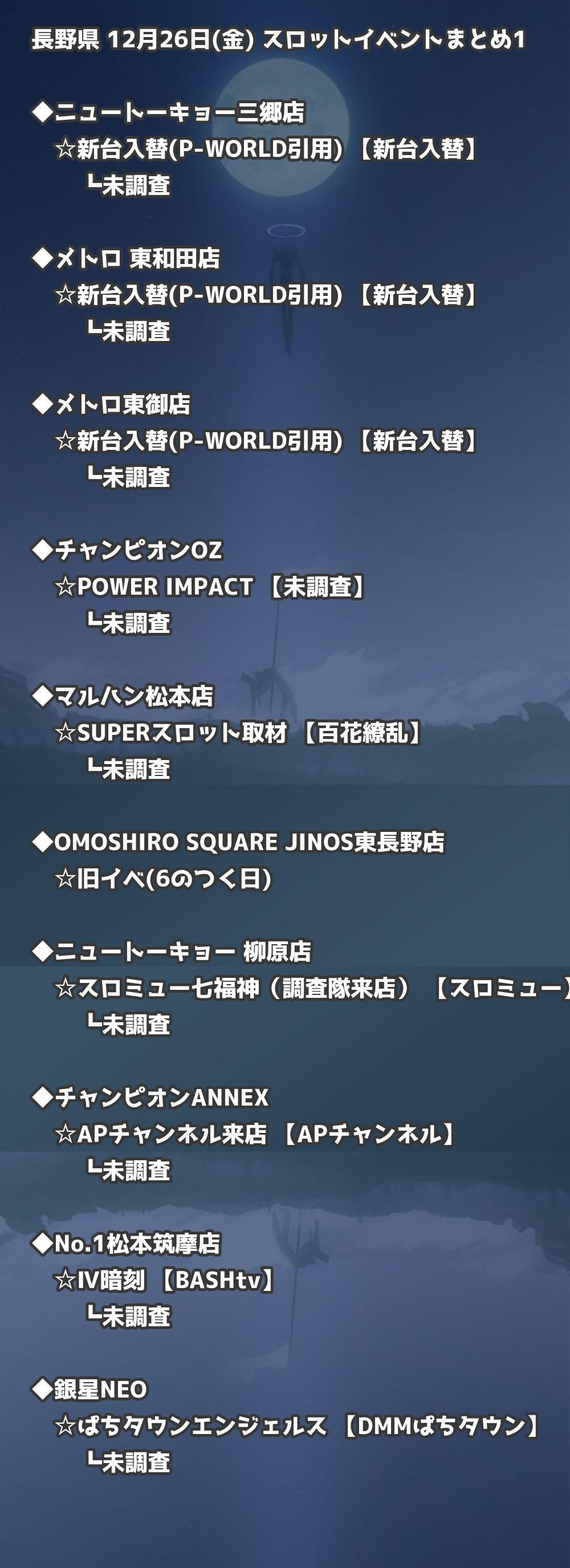 【長野県】12月26日(金) パチンコホールイベント取材まとめ記事です。