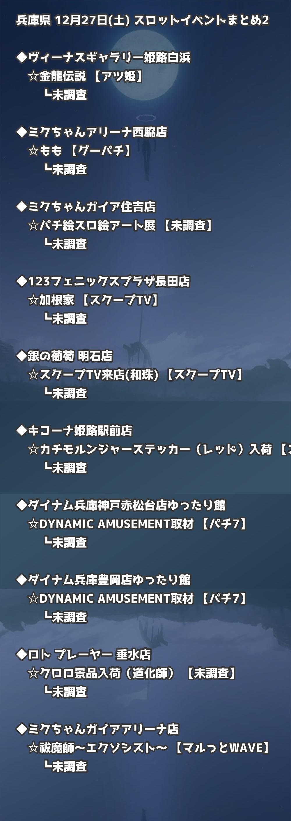 【兵庫県】12月27日(土) パチンコホールイベント取材まとめ記事です。