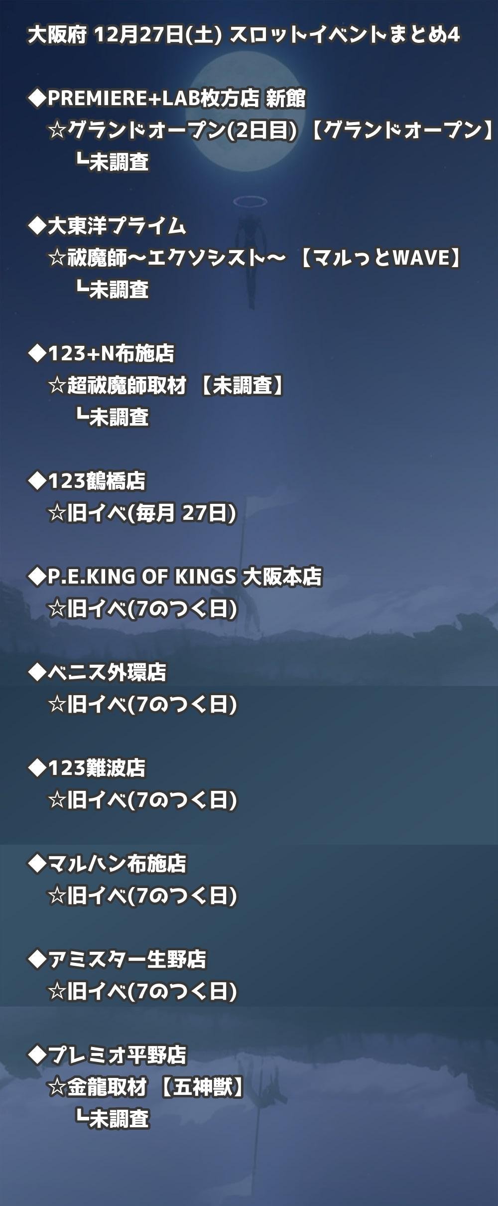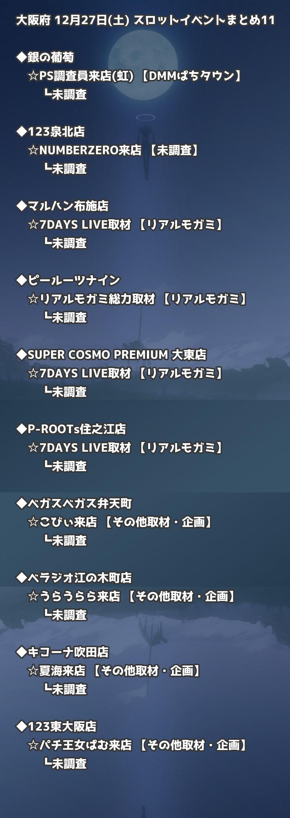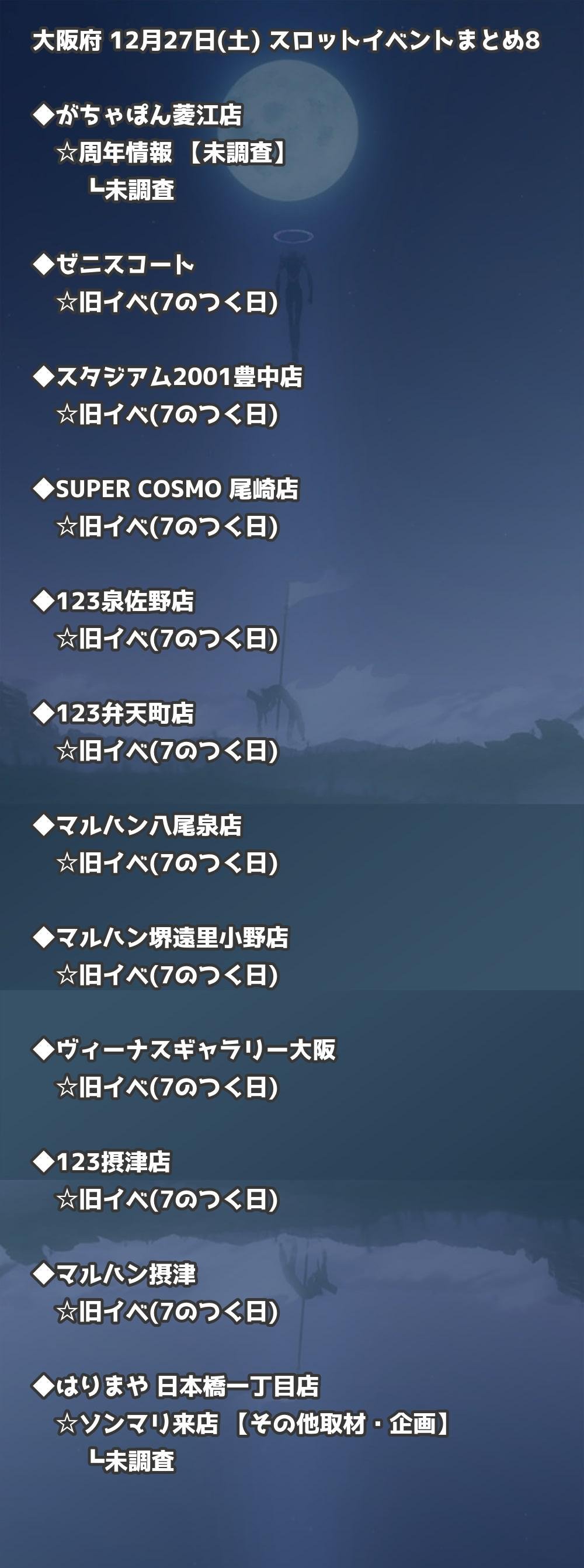 【大阪府】12月27日(土) パチンコホールイベント取材まとめ記事です。