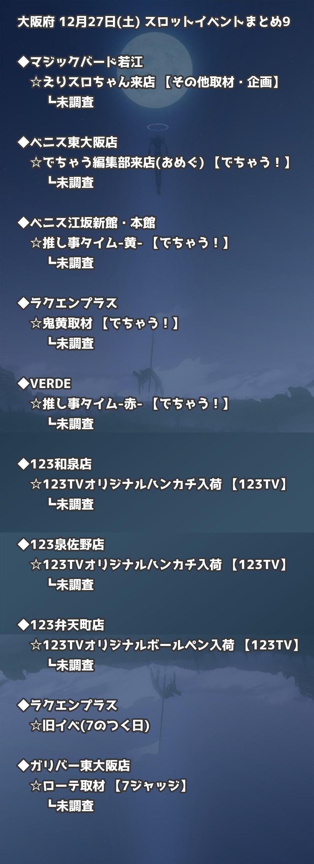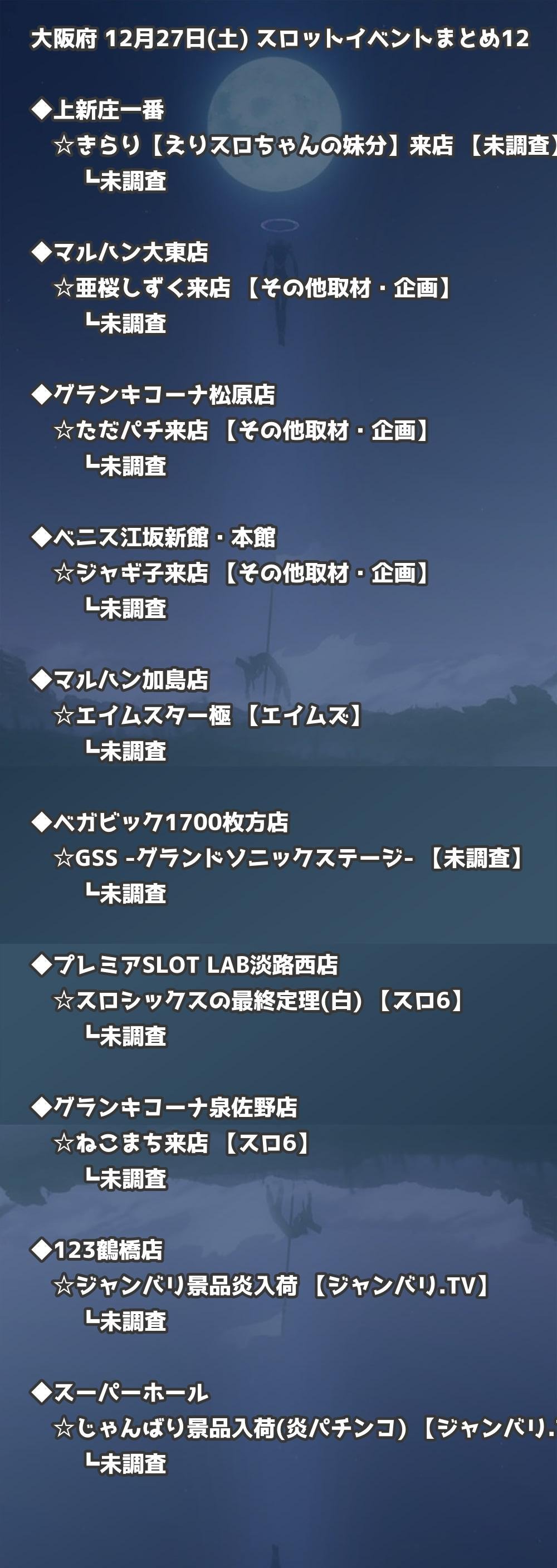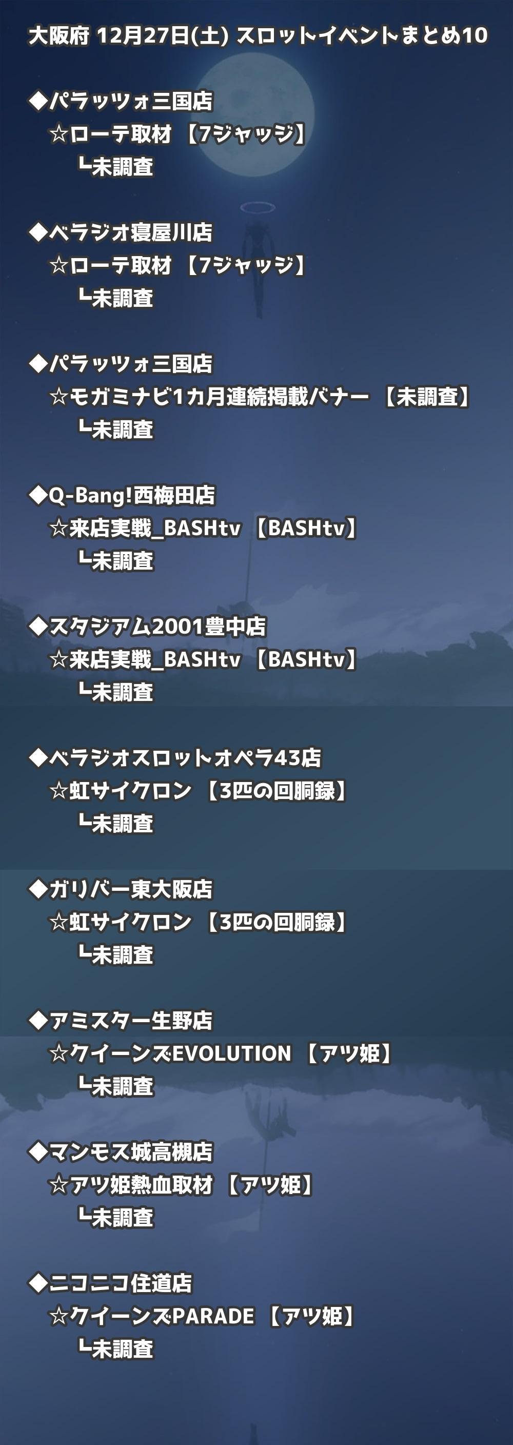 【大阪府】12月27日(土) パチンコホールイベント取材まとめ記事です。