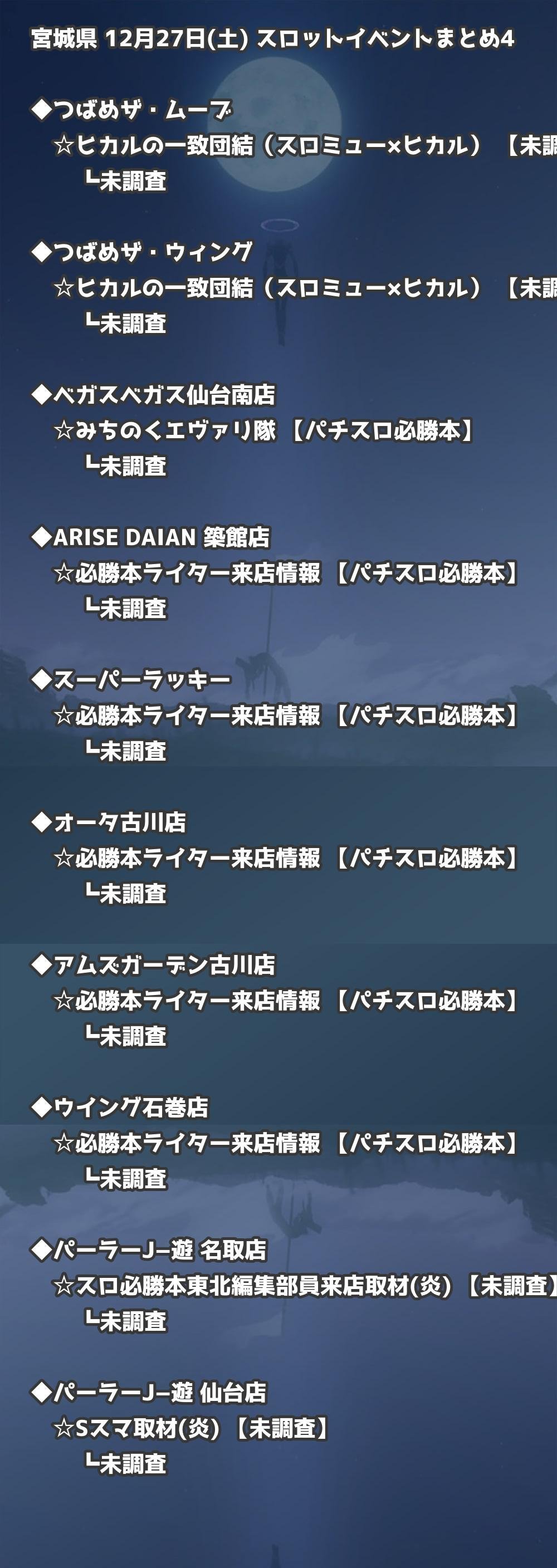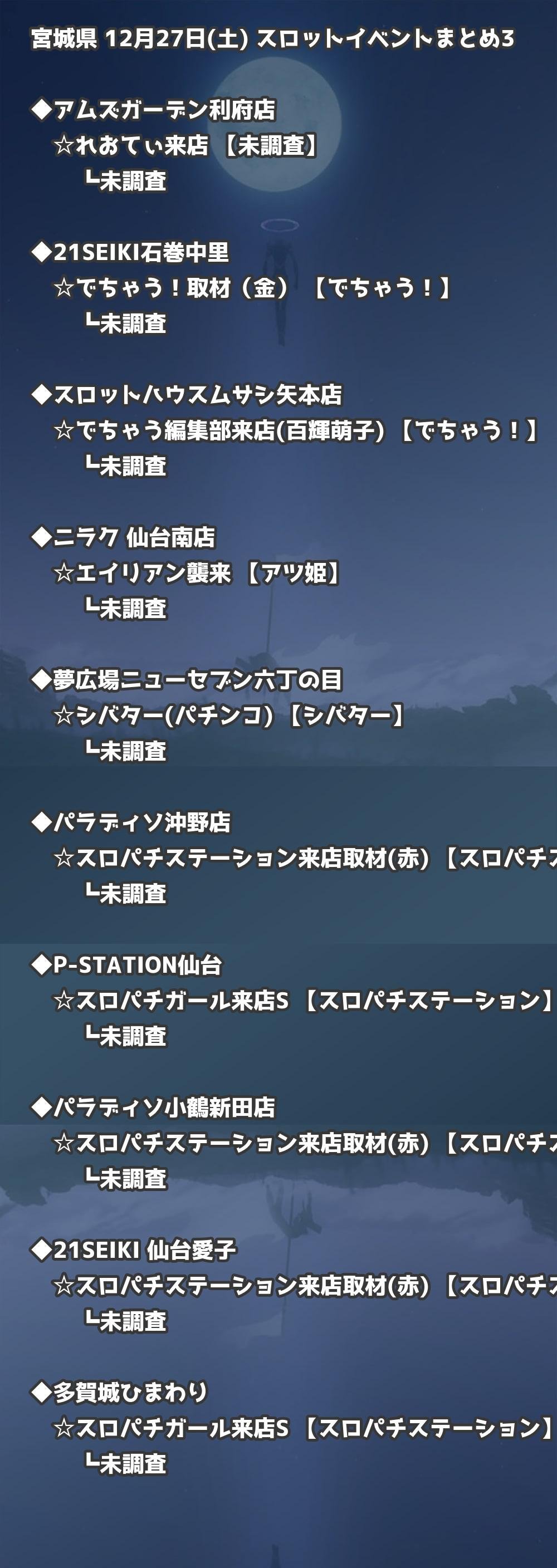【宮城県】12月27日(土) パチンコホールイベント取材まとめ記事です。