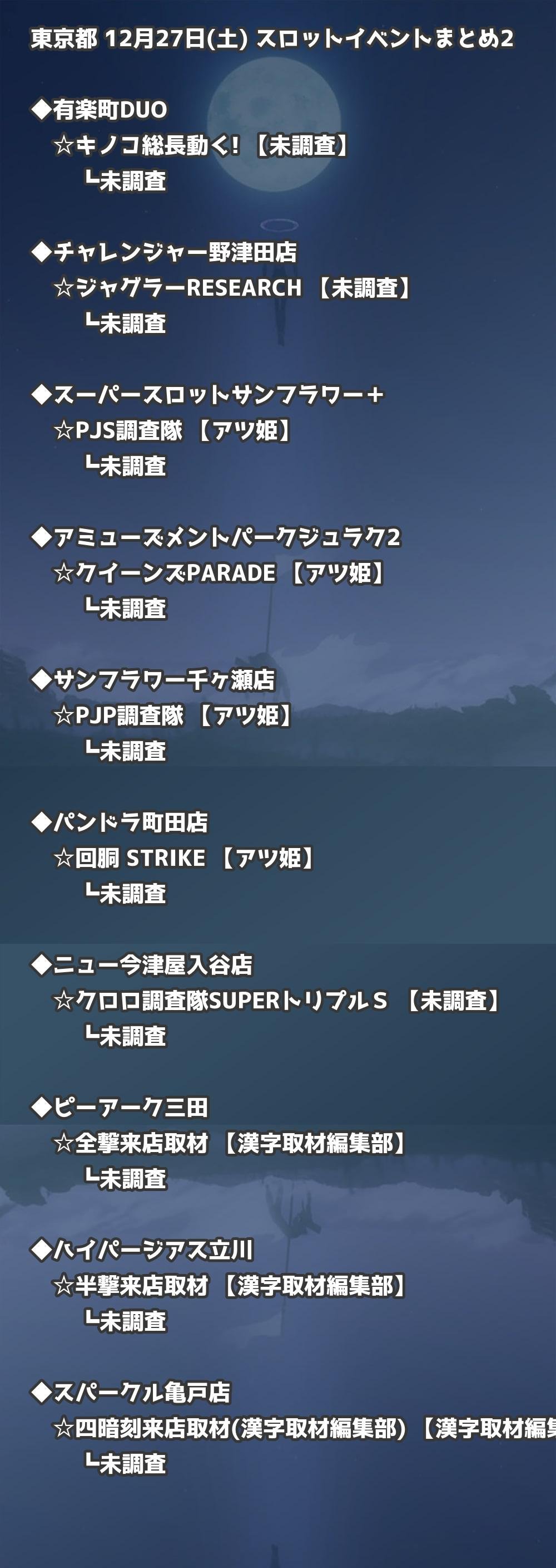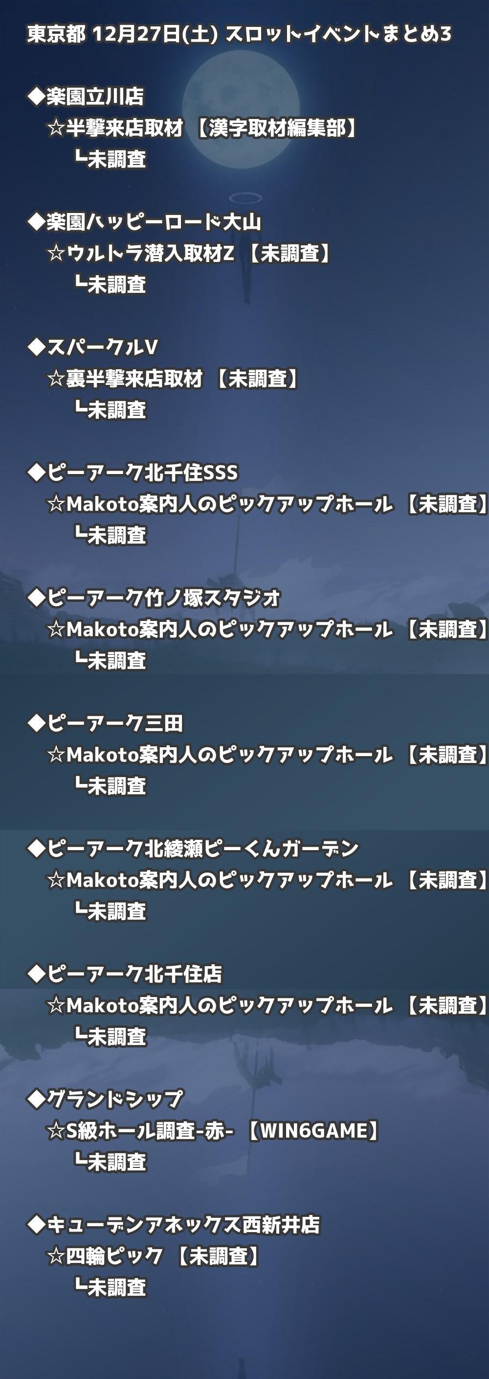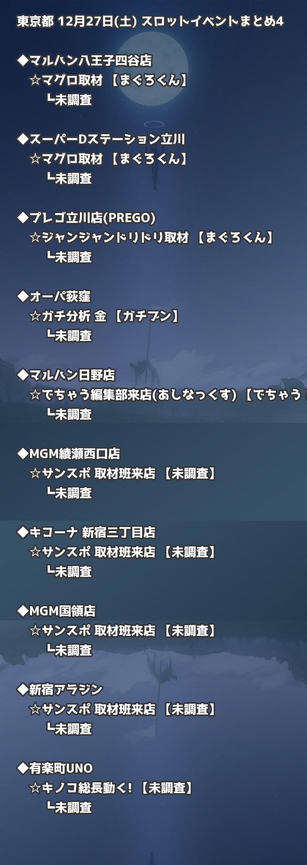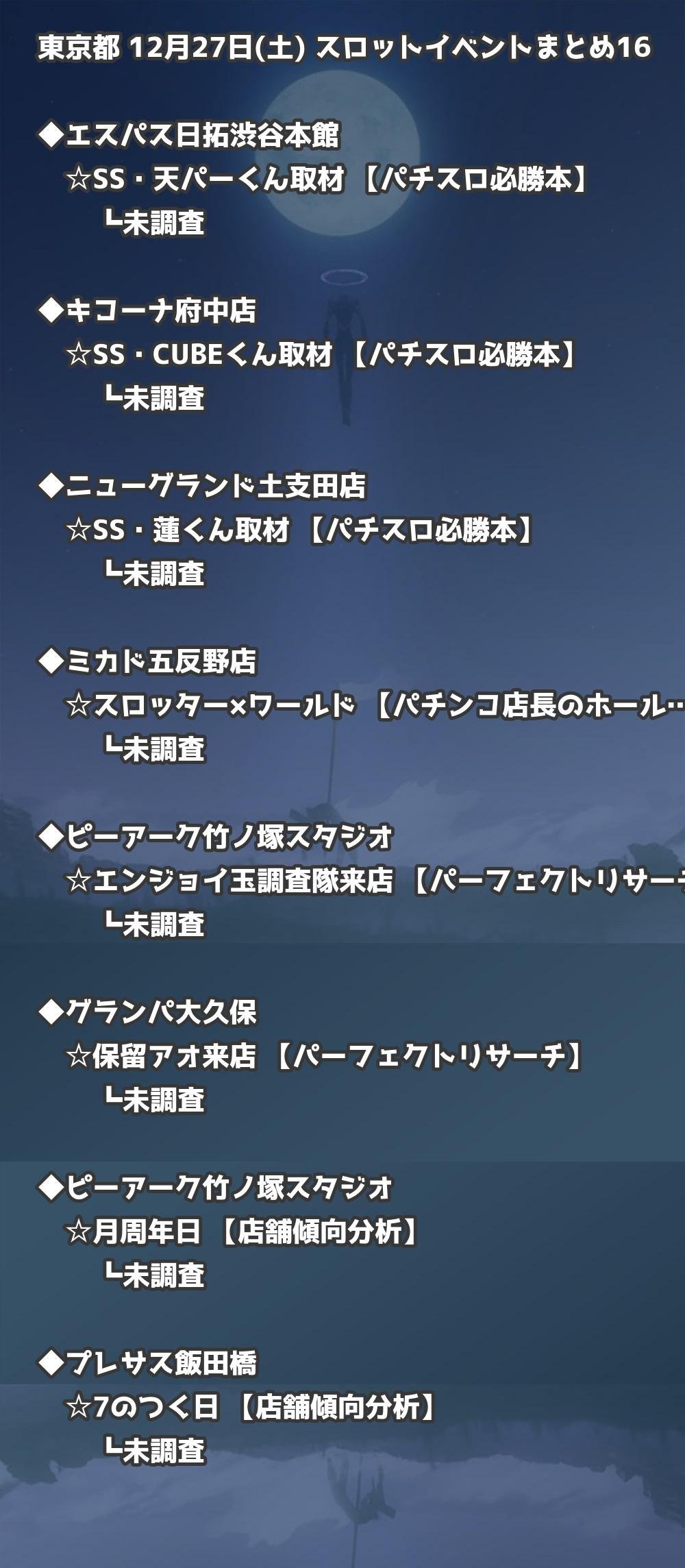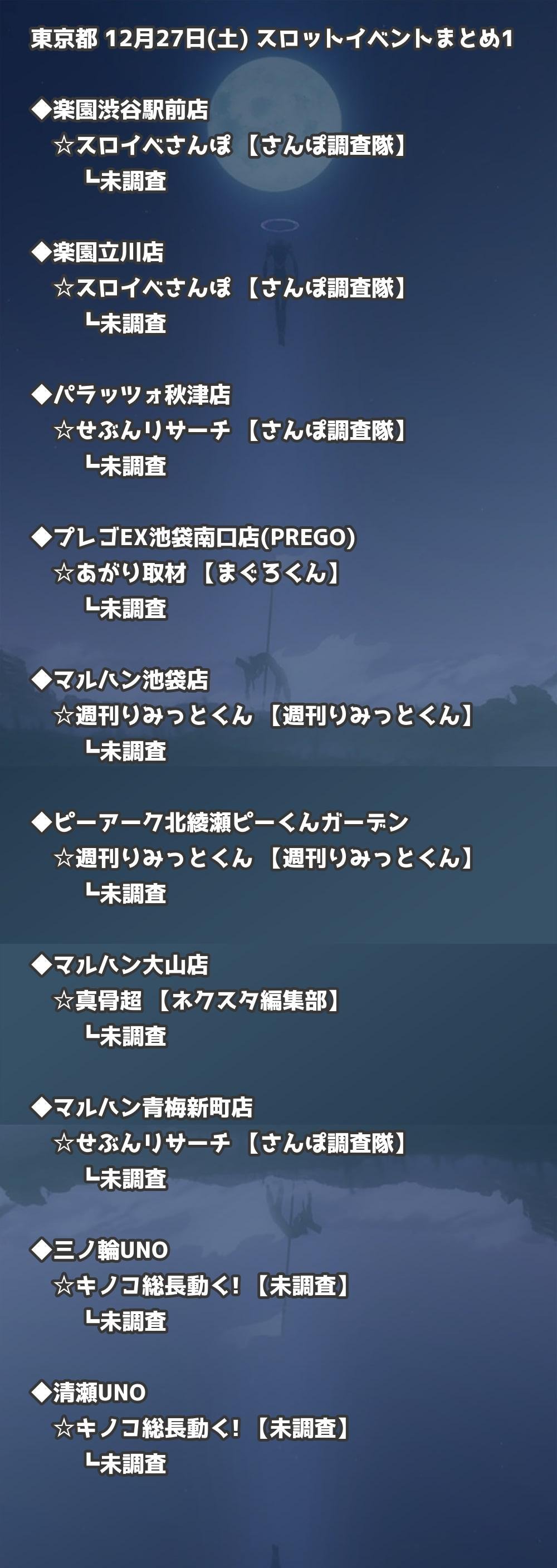 📊 東京都 12月27日(土) 勝てるパチンコ・スロット取材店舗一覧|おすすめ順