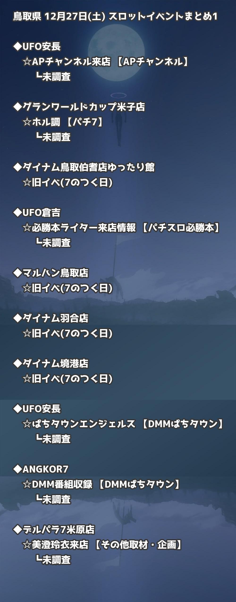 【鳥取県】12月27日(土) パチンコホールイベント取材まとめ記事です。