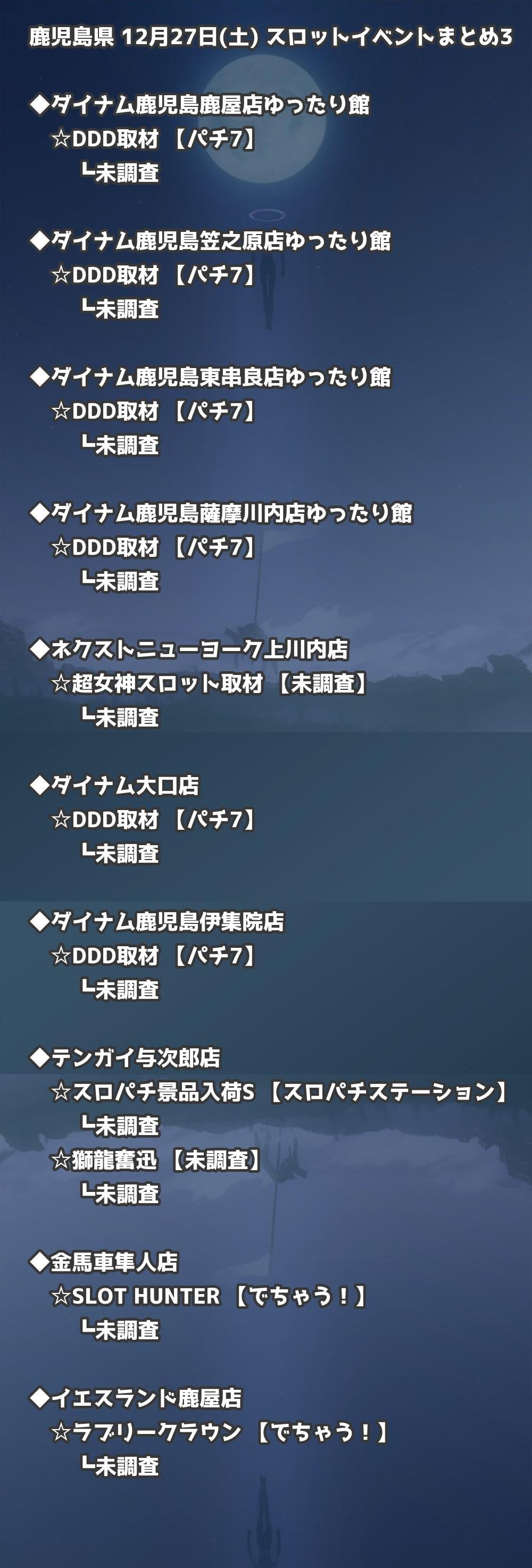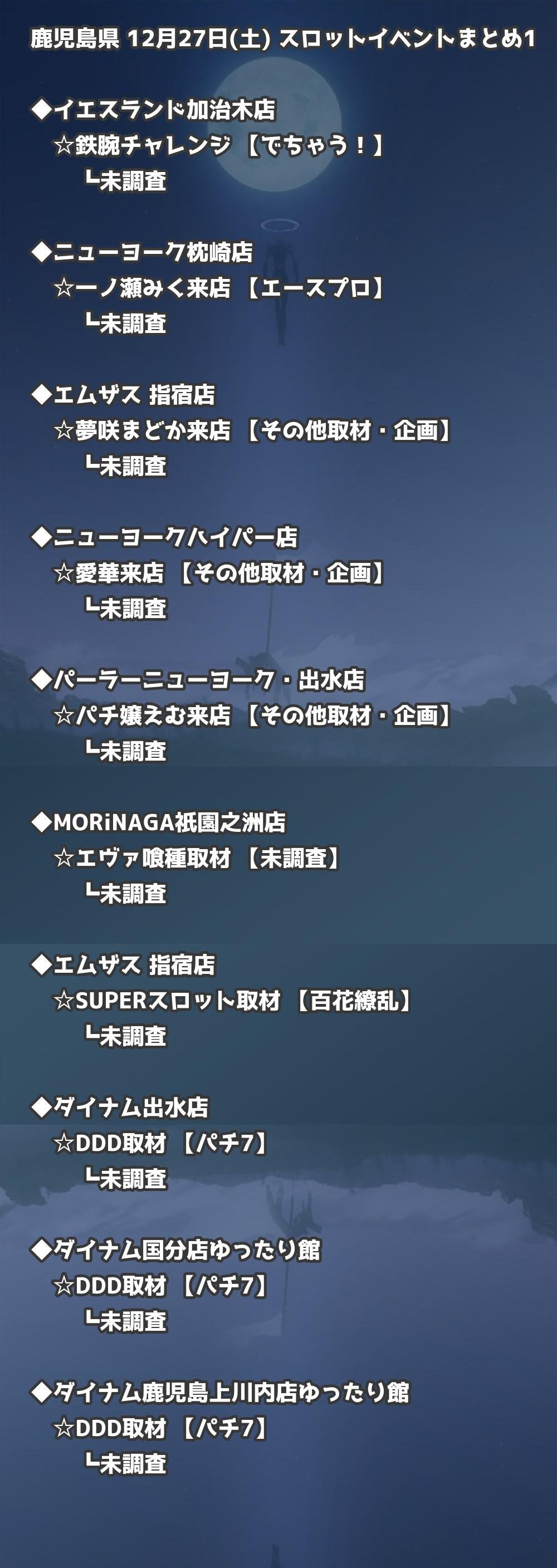 【鹿児島県】12月27日(土) パチンコホールイベント取材まとめ記事です。