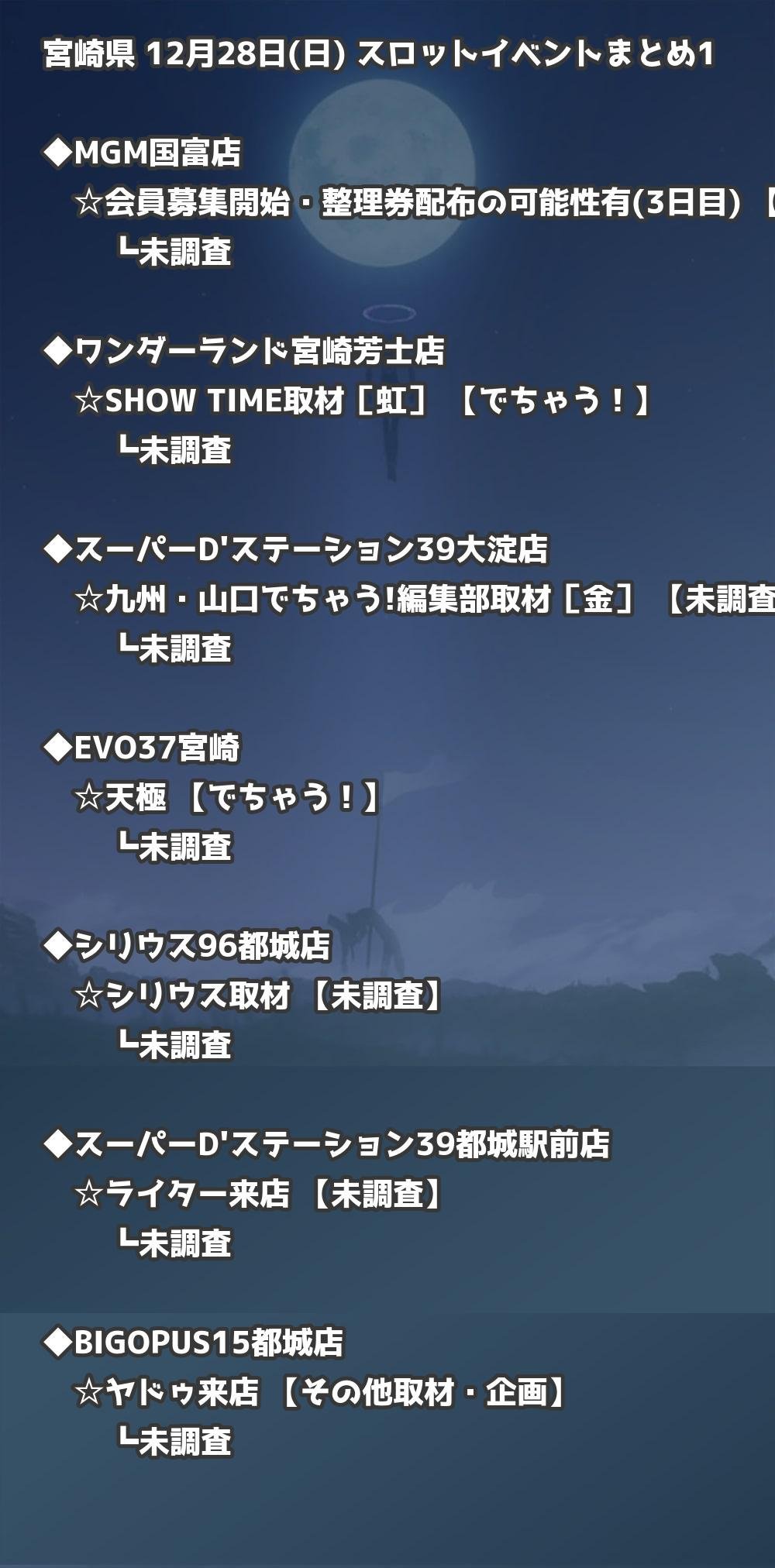 📊 宮崎県 12月28日(日) 勝てるパチンコ・スロット取材店舗一覧|おすすめ順