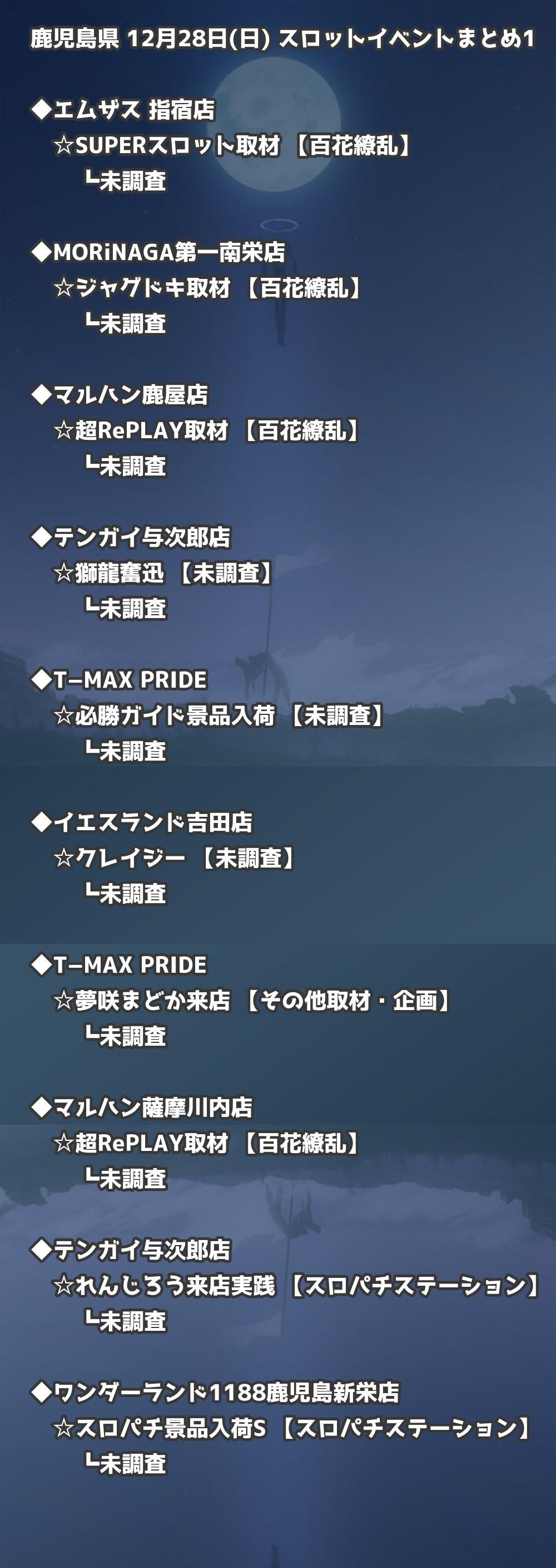 📊 鹿児島県 12月28日(日) 勝てるパチンコ・スロット取材店舗一覧|おすすめ順