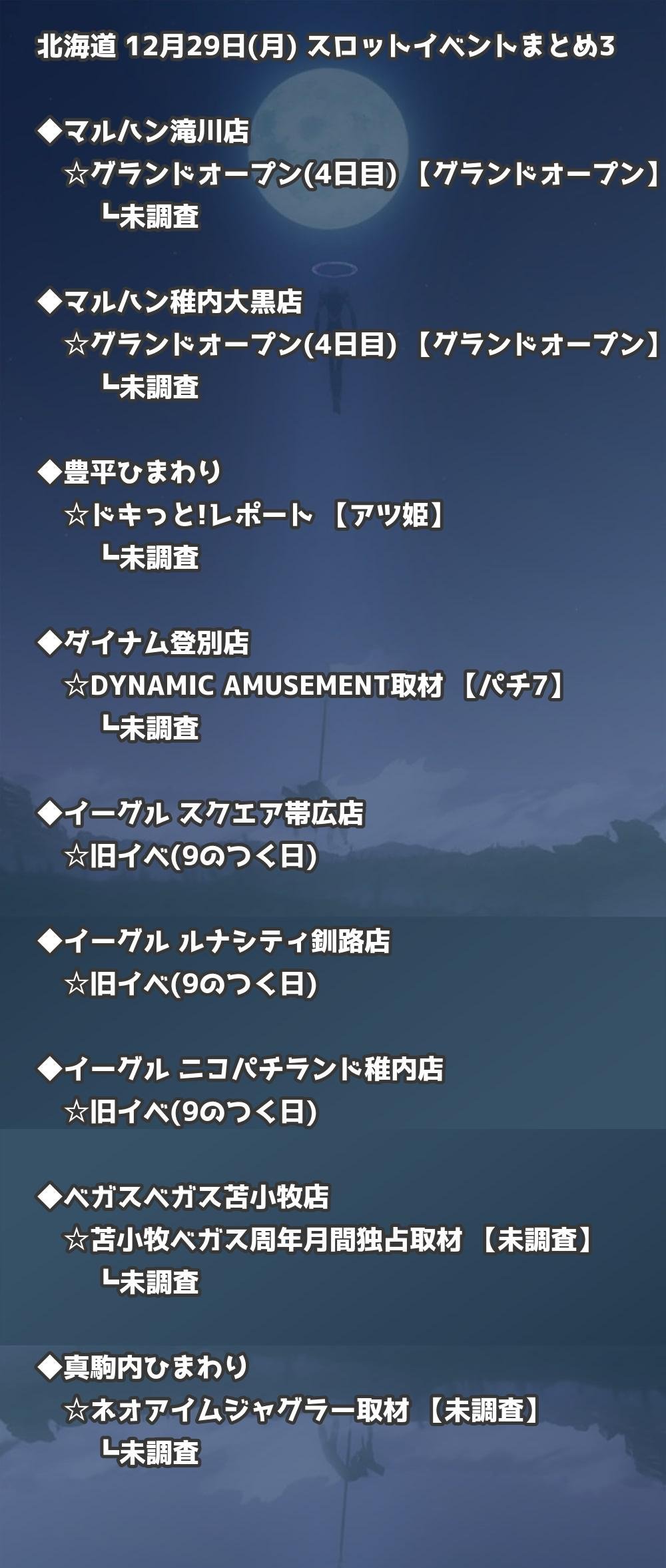 【北海道】12月29日(月) パチンコホールイベント取材まとめ記事です。