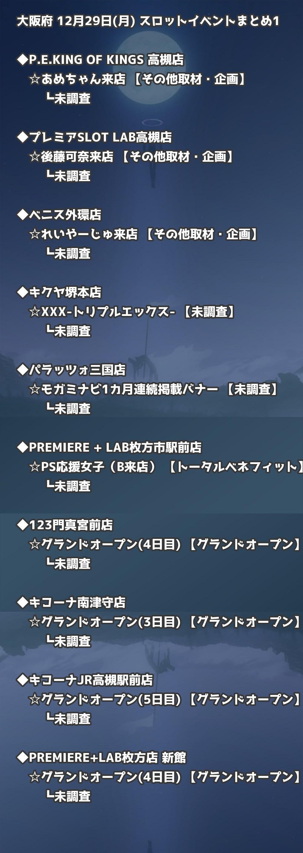 【大阪府】12月29日(月) パチンコホールイベント取材まとめ記事です。