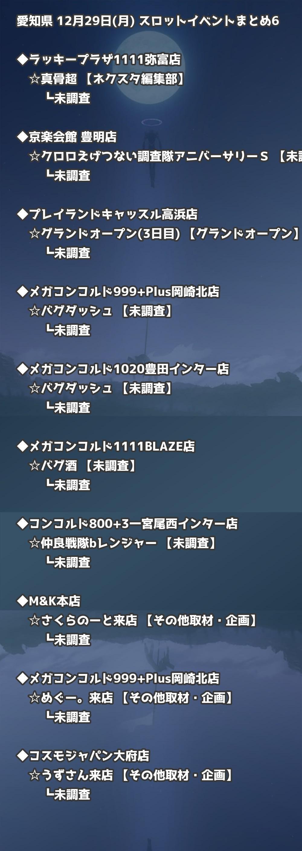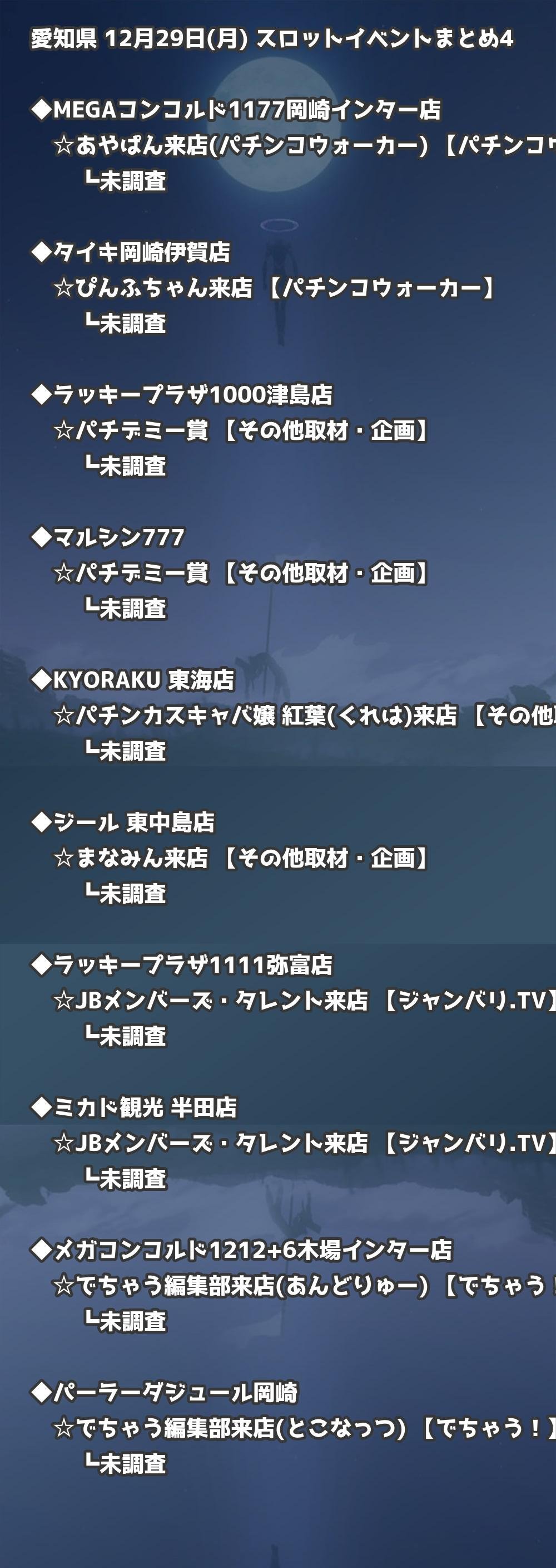 【愛知県】12月29日(月) パチンコホールイベント取材まとめ記事です。