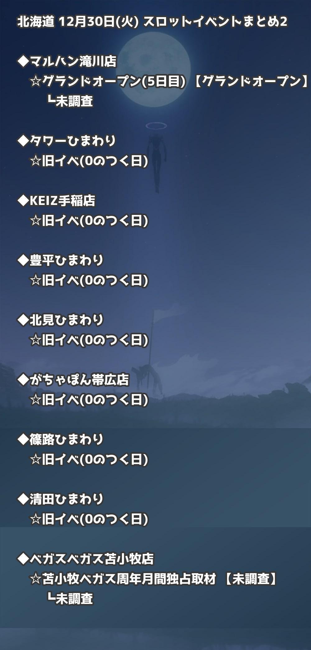 【北海道】12月30日(火) パチンコホールイベント取材まとめ記事です。