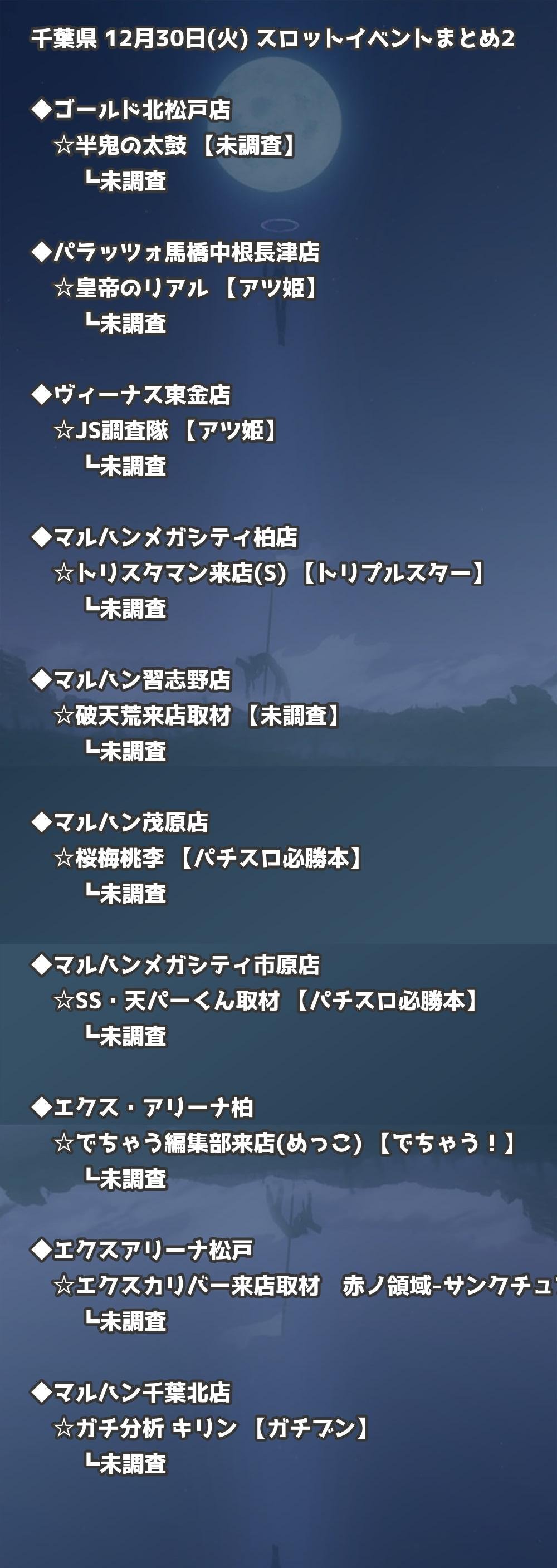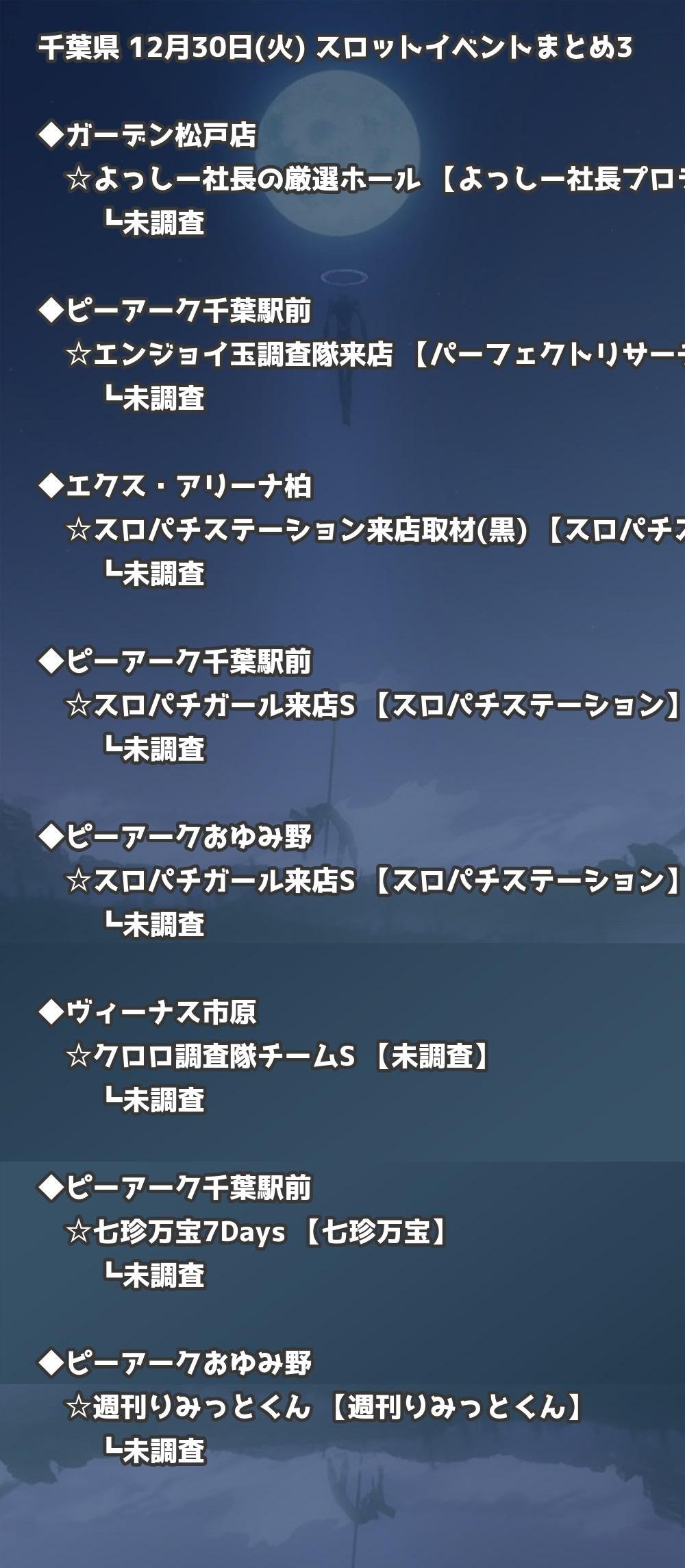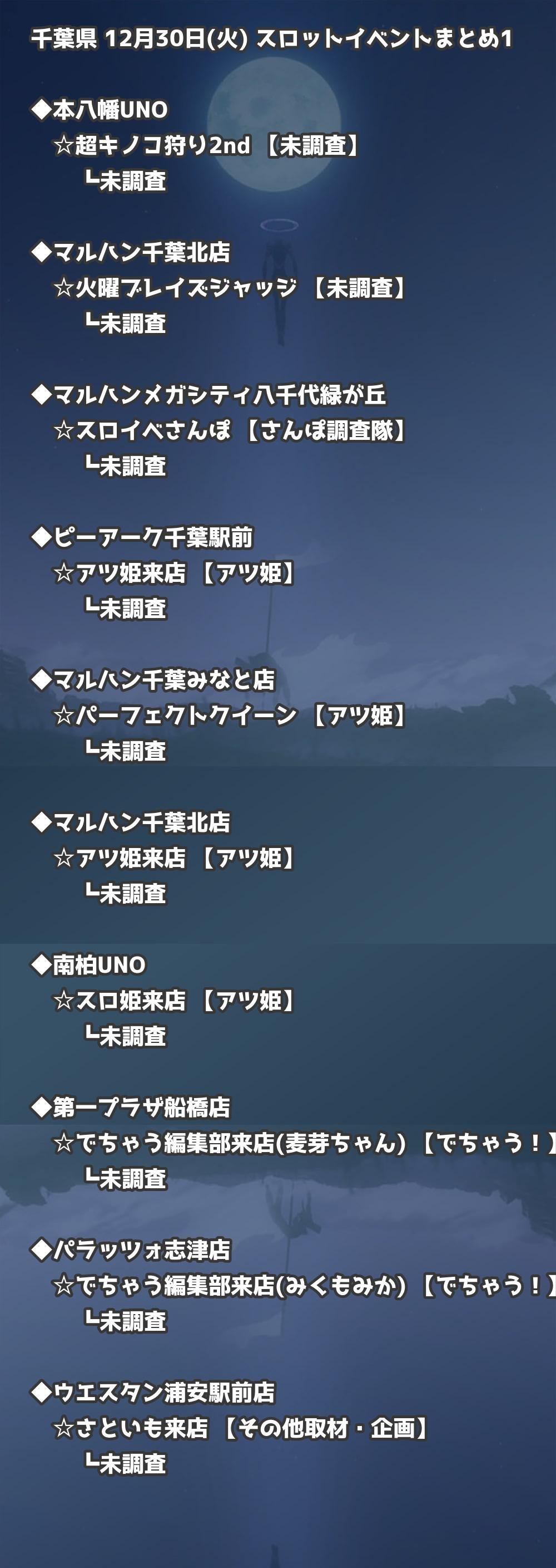 📊 千葉県 12月30日(火) 勝てるパチンコ・スロット取材店舗一覧|おすすめ順