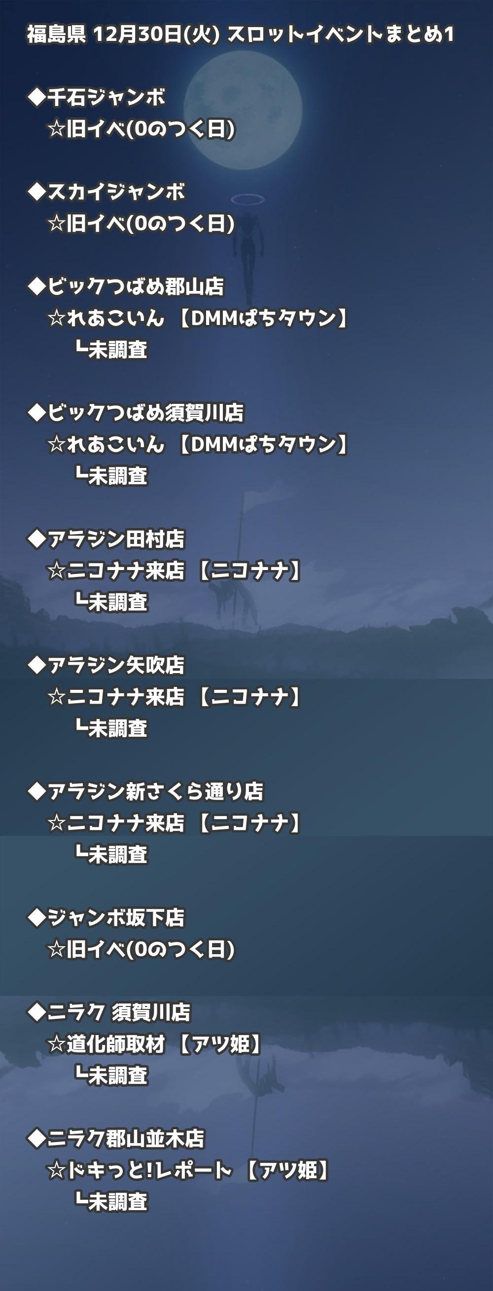 【福島県】12月30日(火) パチンコホールイベント取材まとめ記事です。