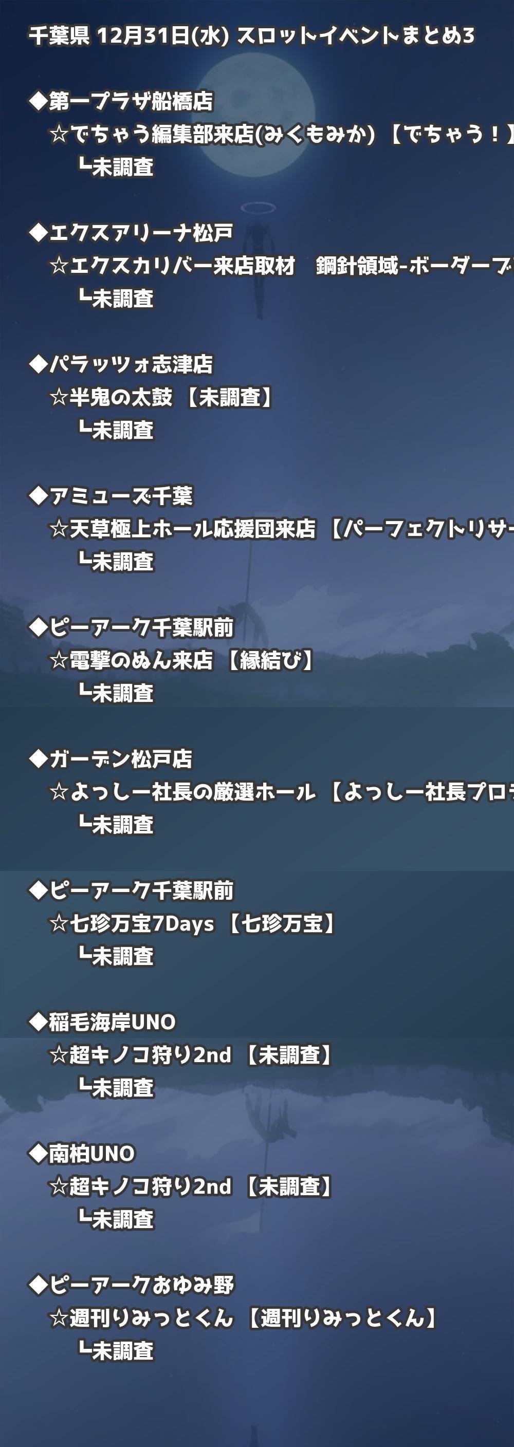 【千葉県】12月31日(水) パチンコホールイベント取材まとめ記事です。