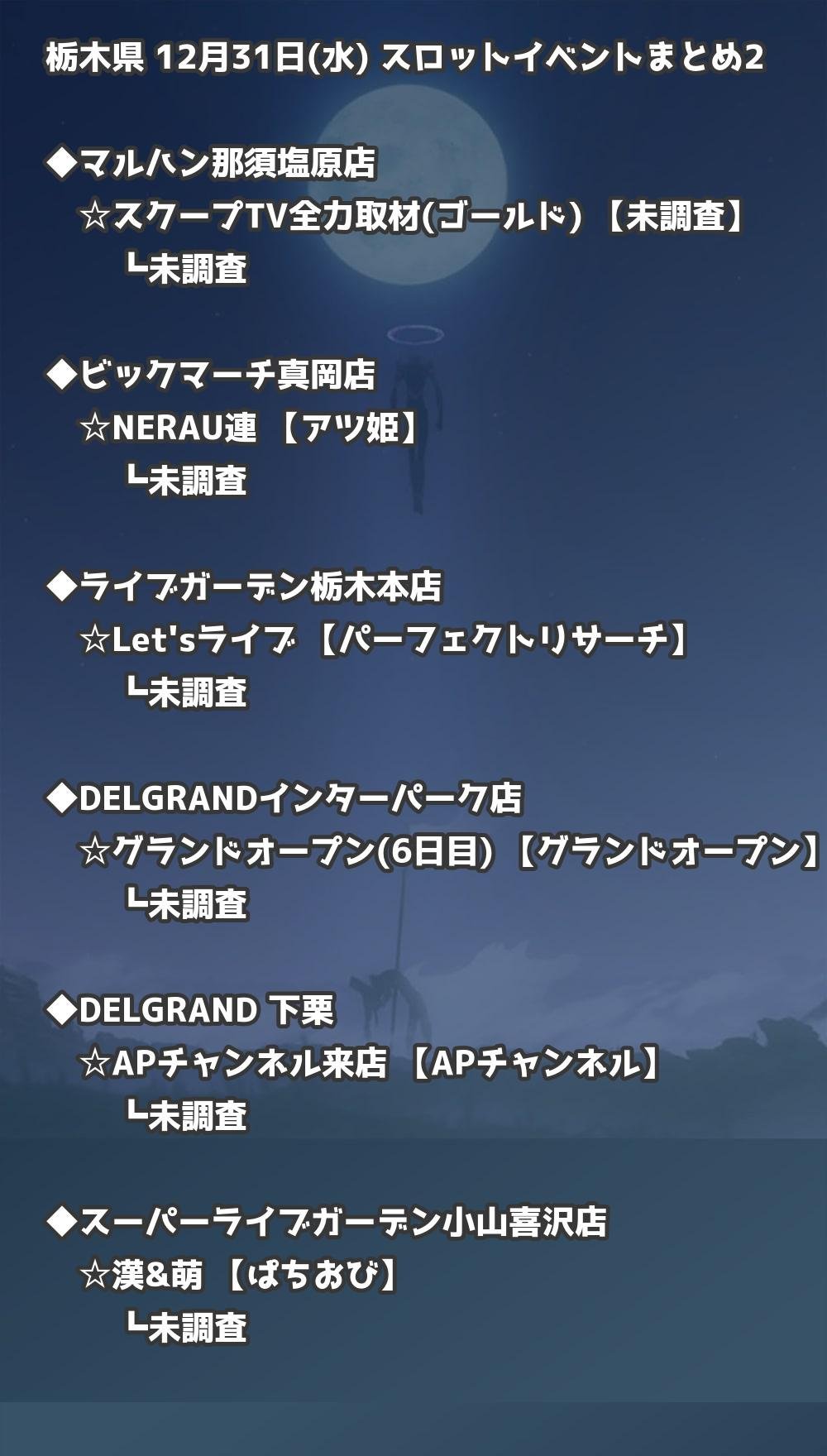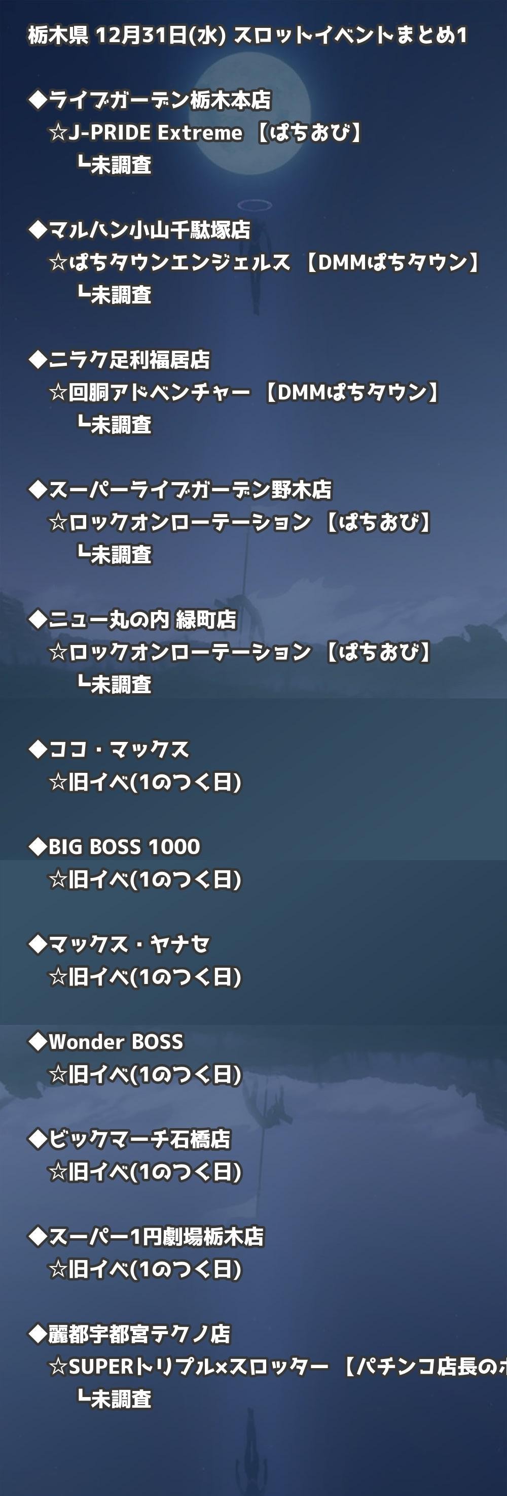【栃木県】12月31日(水) パチンコホールイベント取材まとめ記事です。