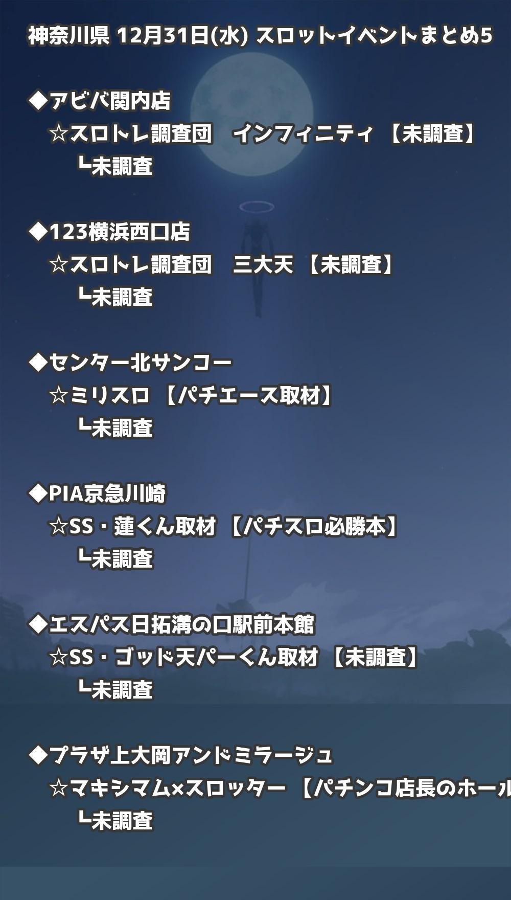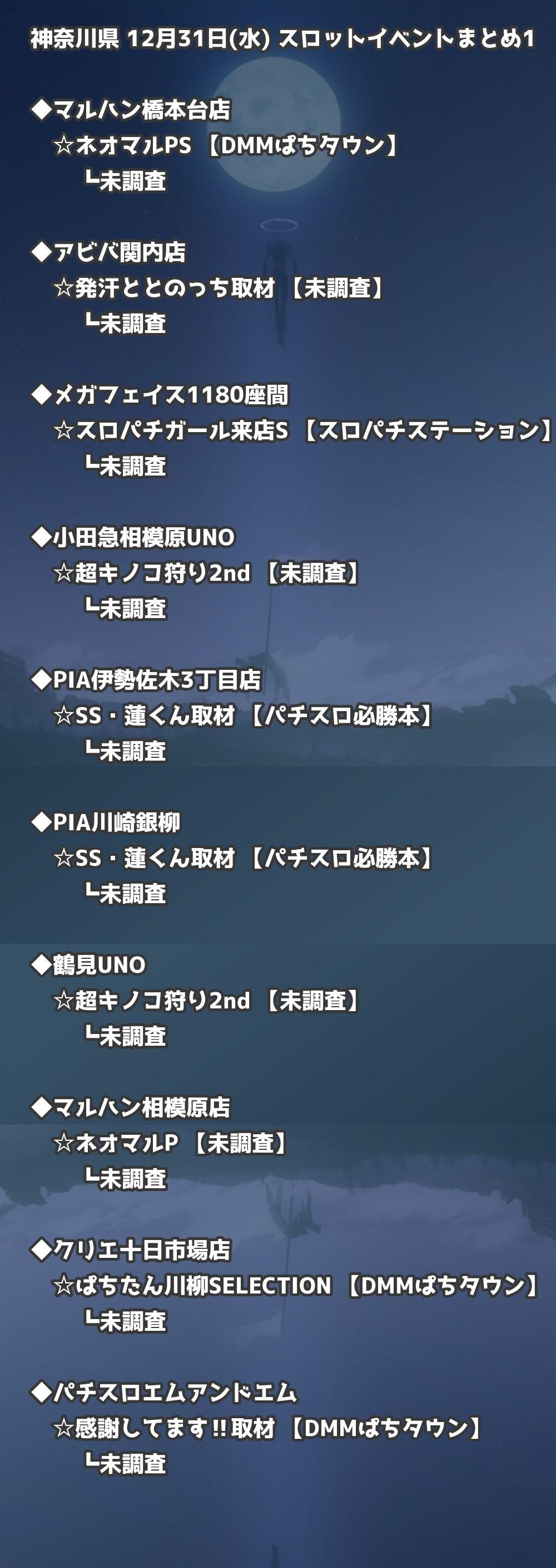 📊 神奈川県 12月31日(水) 勝てるパチンコ・スロット取材店舗一覧|おすすめ順