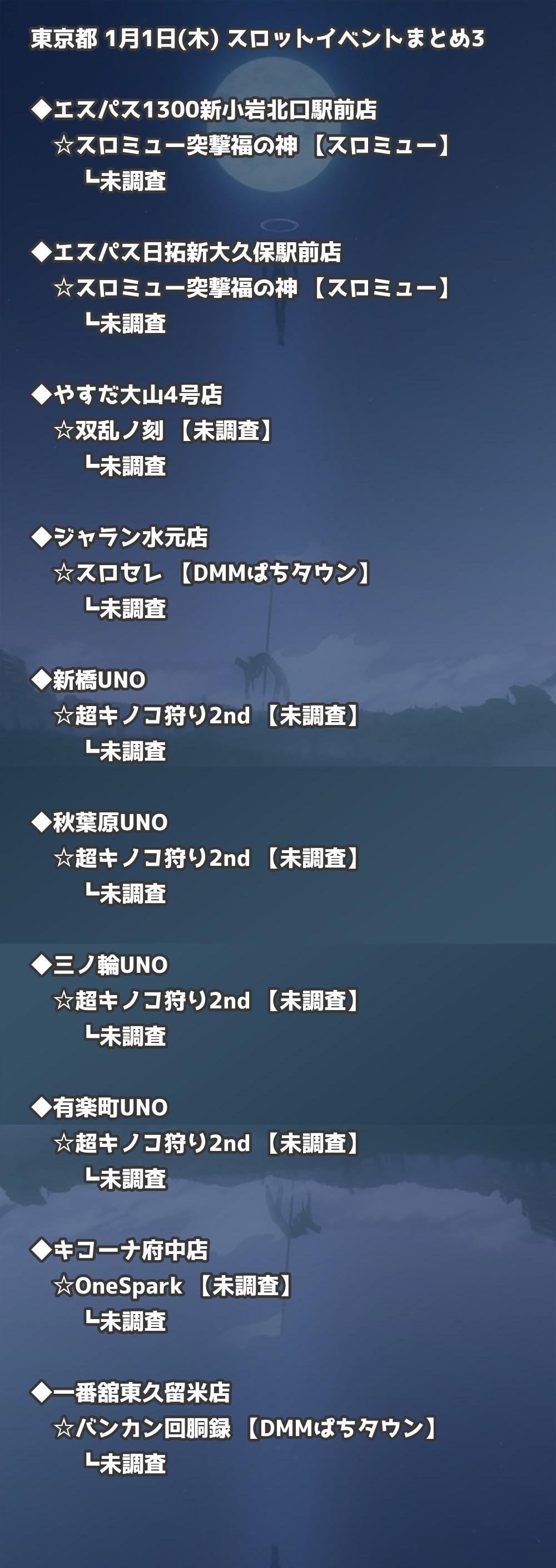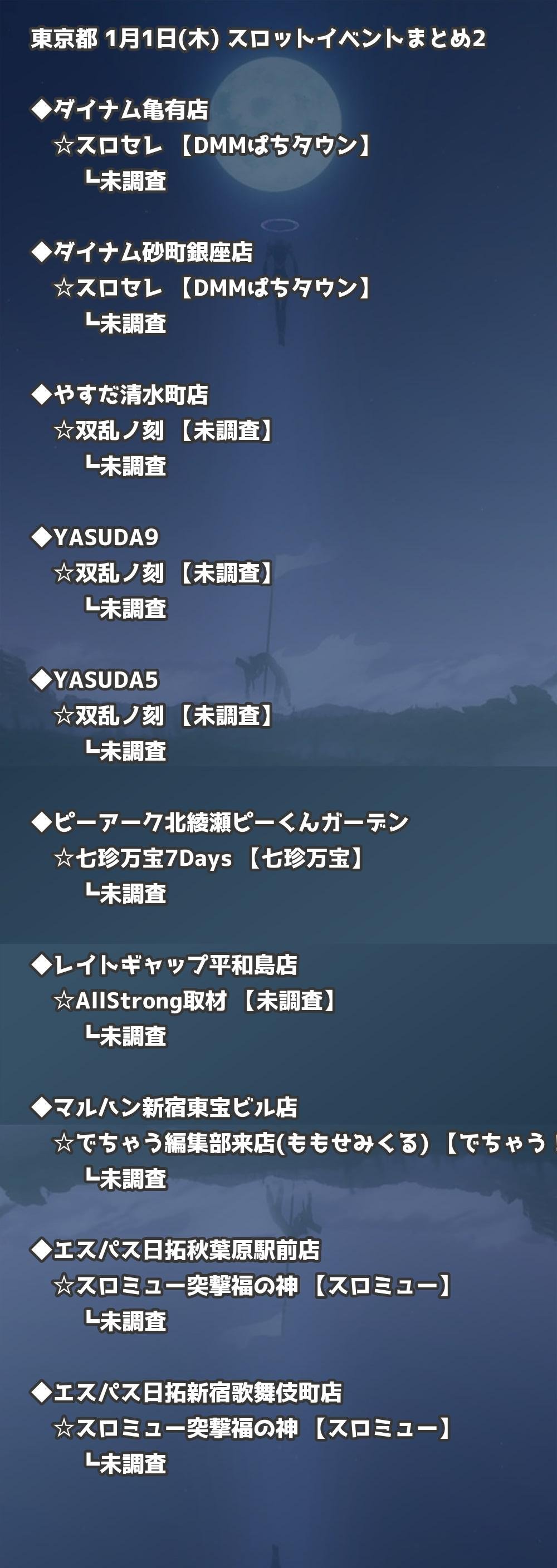 📊 東京都 1月1日(木) 勝てるパチンコ・スロット取材店舗一覧|おすすめ順